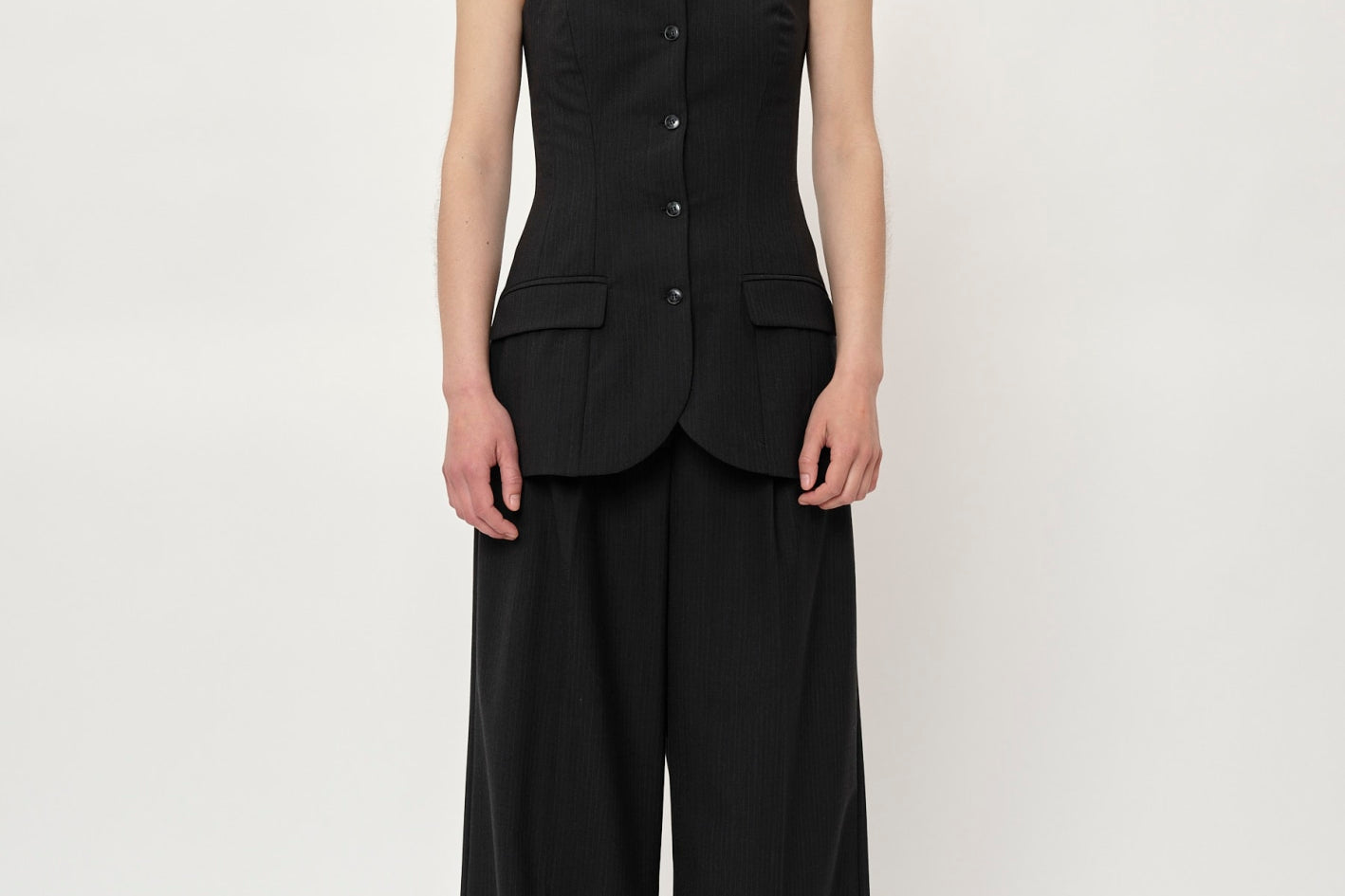 Jacqui Corsage - Dark Grey Pinstripe