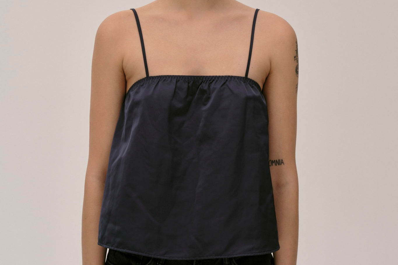 The Alberte Top is a strap top with elastic at the chest and shoulder strap, offering lots of volume.