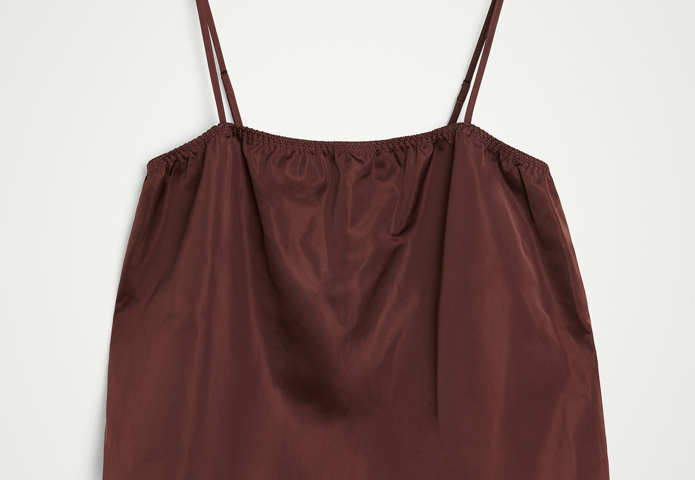 The Alberte Top is a strap top with elastic at the chest and shoulder strap, offering lots of volume.