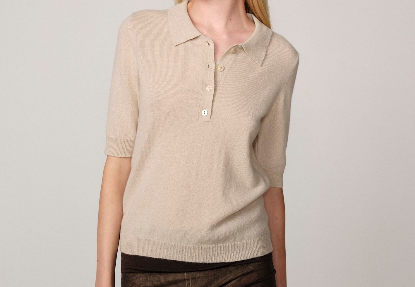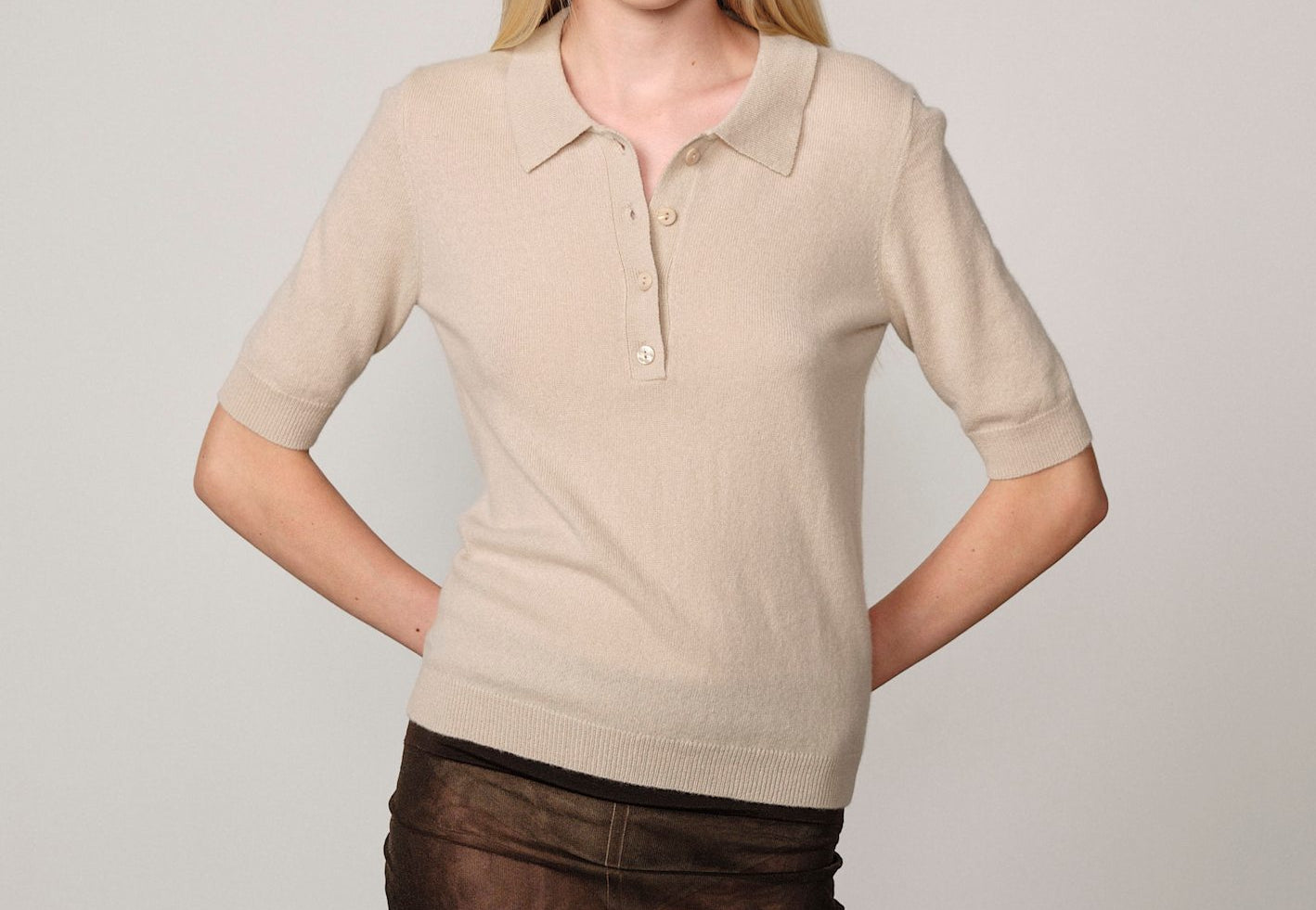 Alberto Knit Polo Blouse - Creme