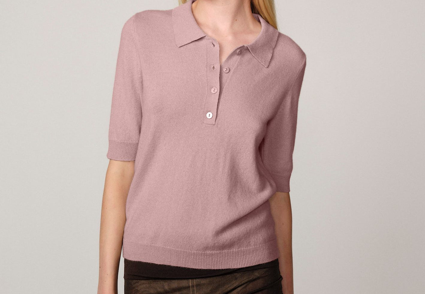 Alberto Knit Polo Blouse - Soft Pink