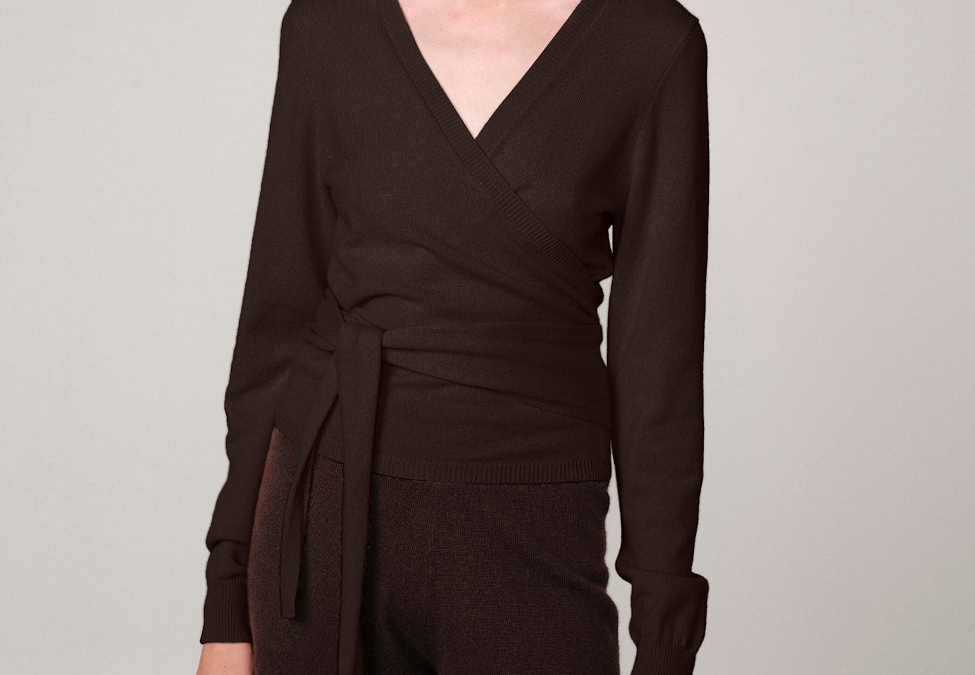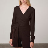 Ballerina Knit Wrap Blouse - Java Brown