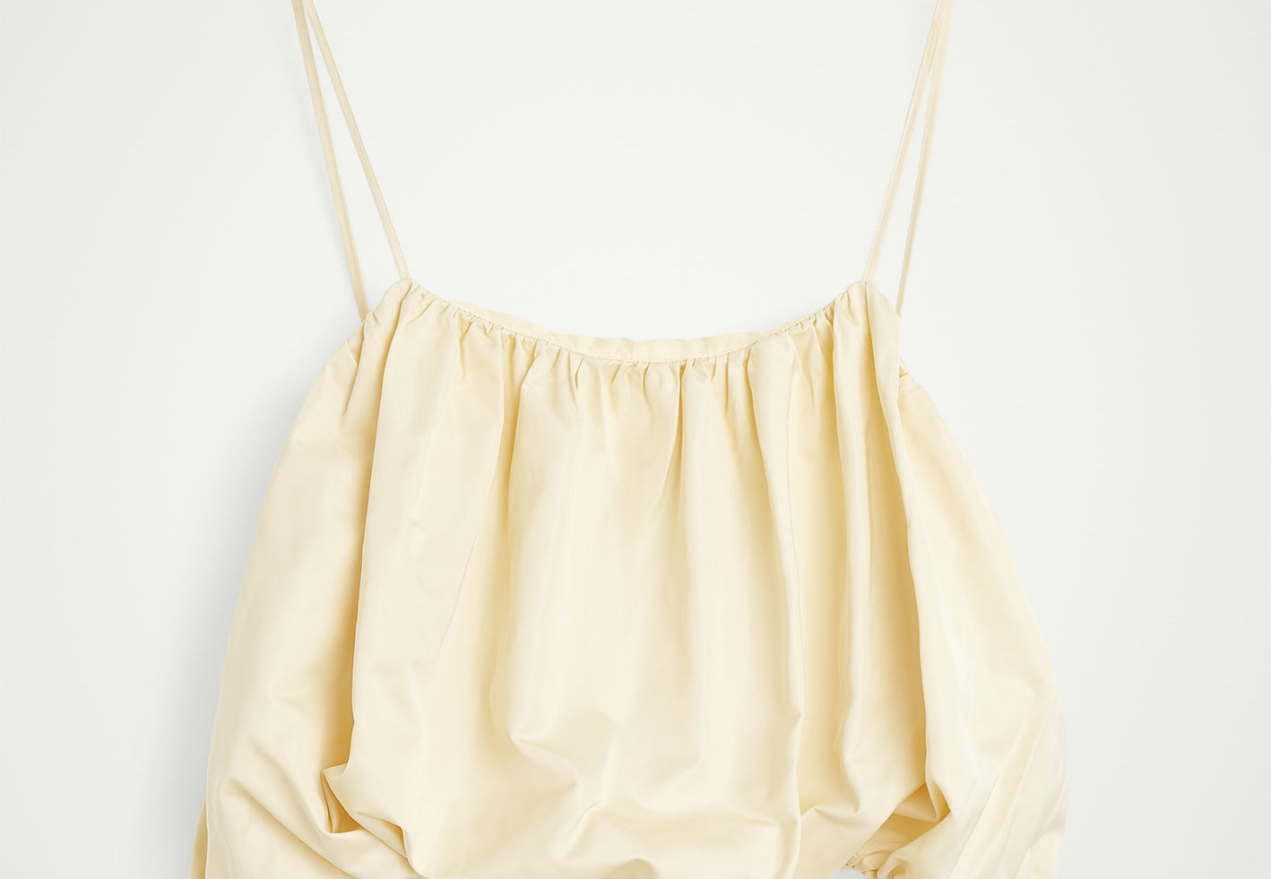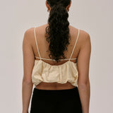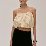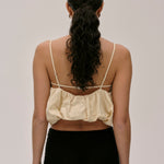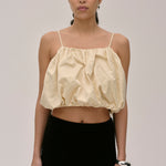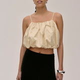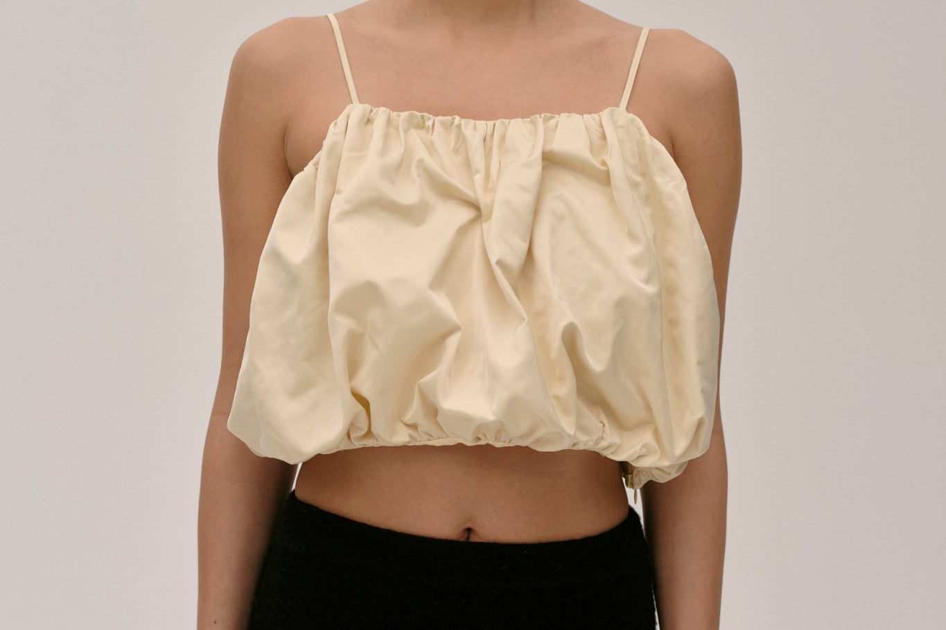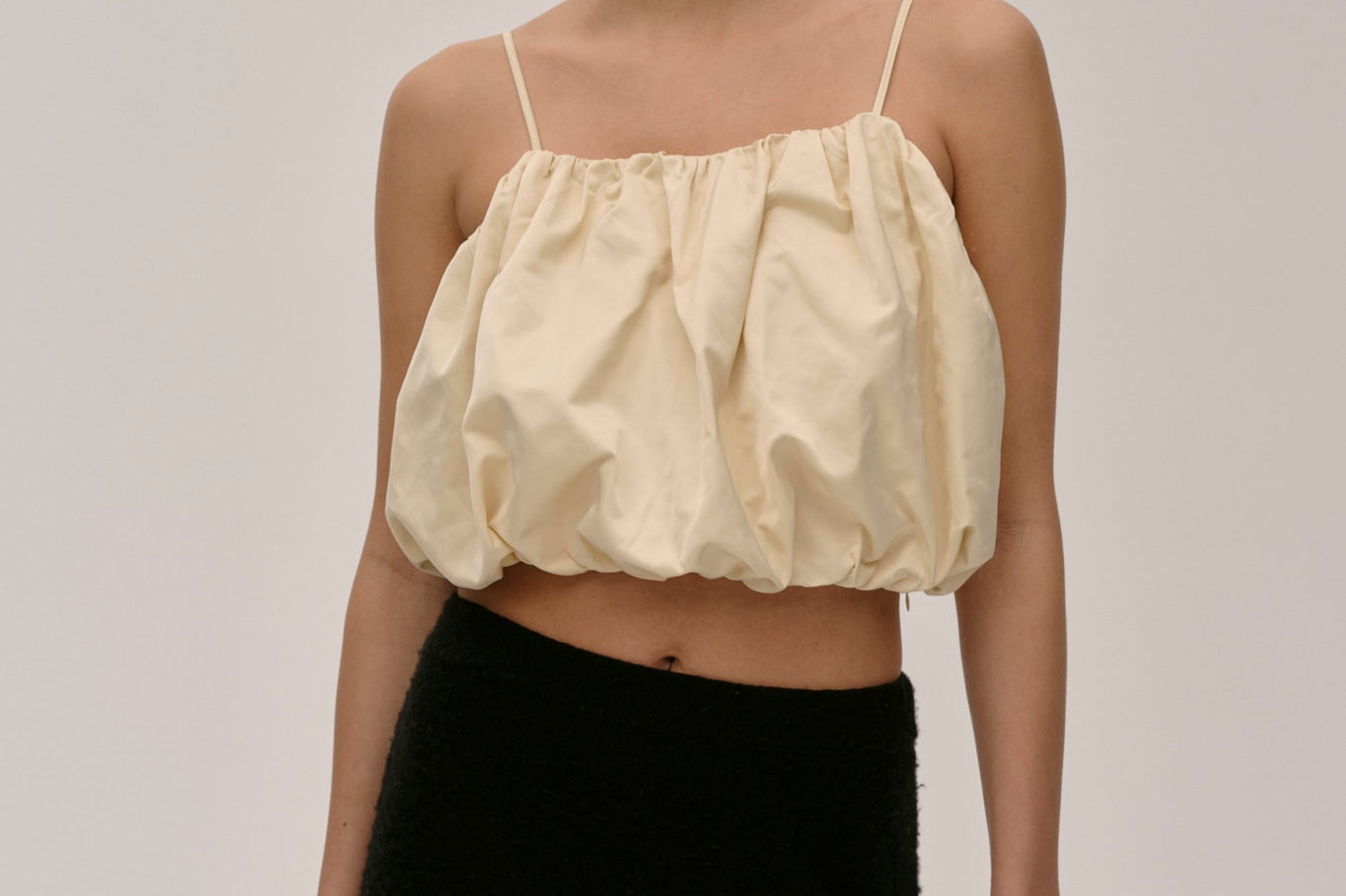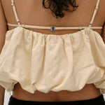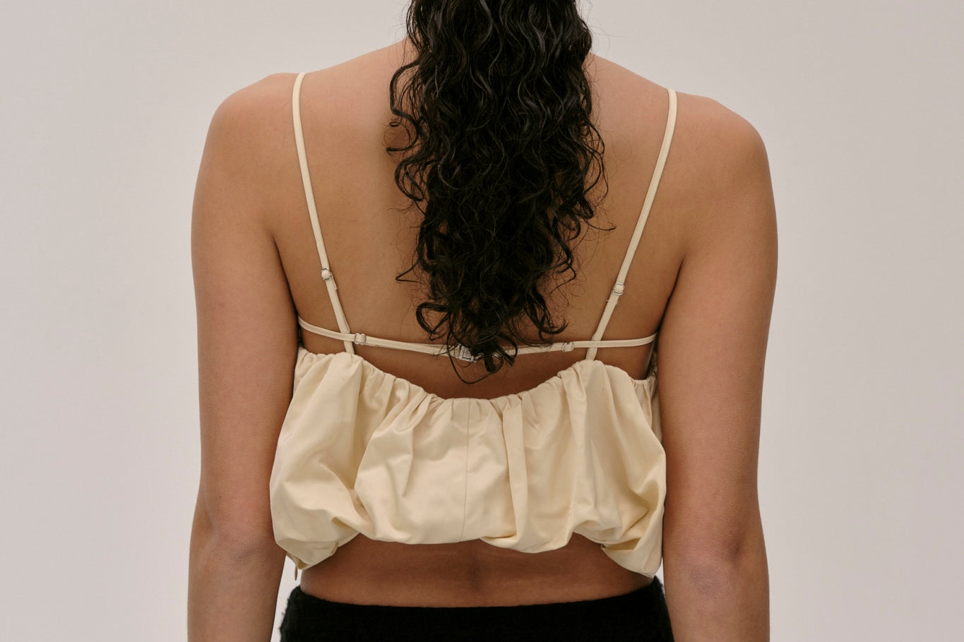 The Elisa Top is a cropped balloon-strap top with a strap at the back, offering lots of volume.