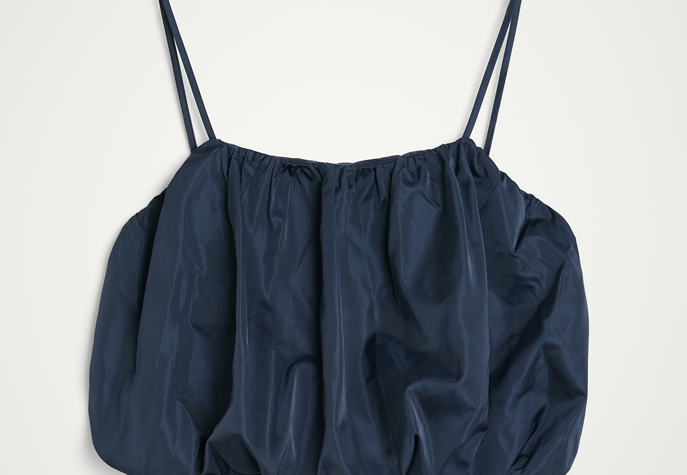 The Elisa Top is a cropped balloon-strap top with a strap at the back, offering lots of volume.