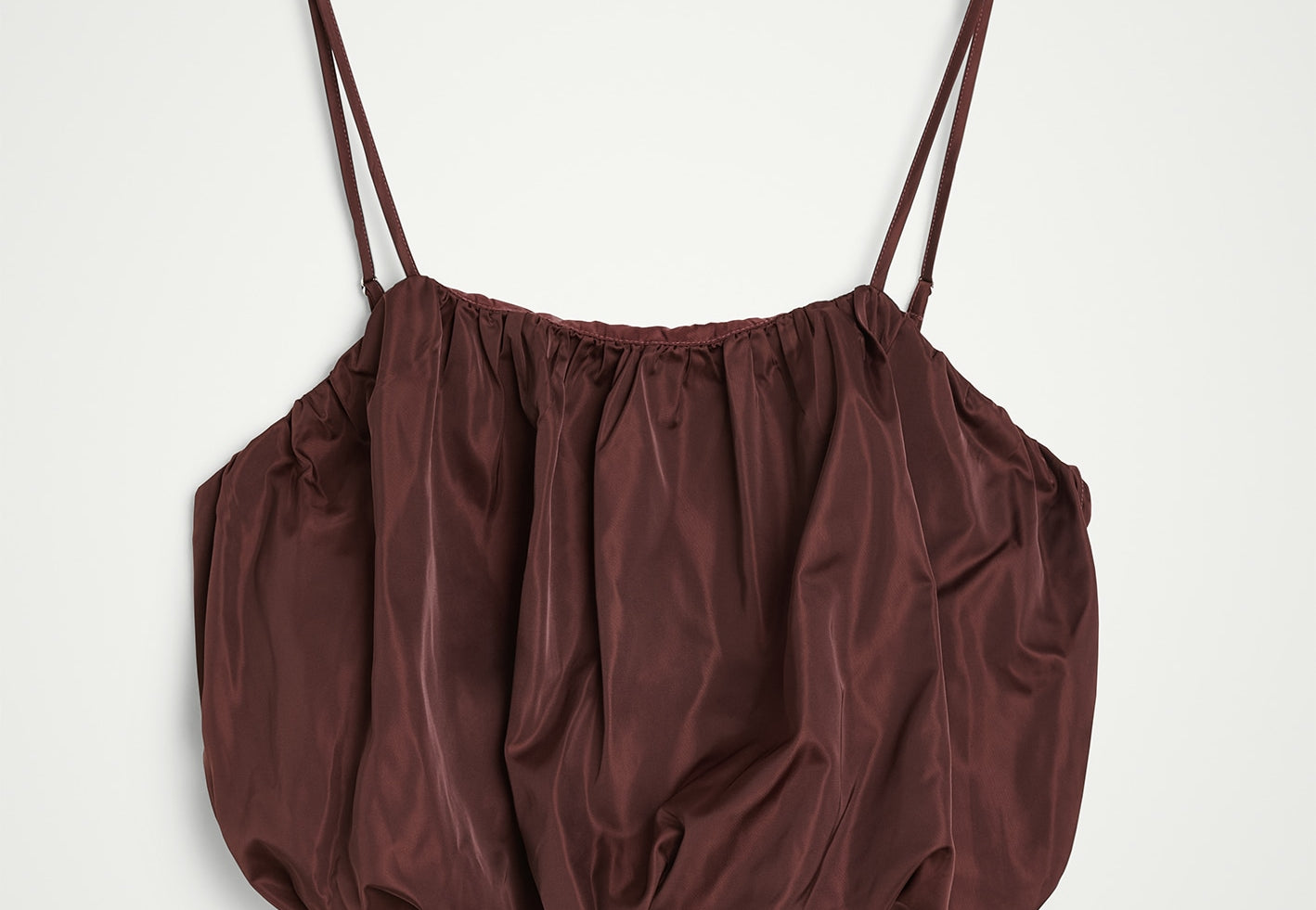 The Elisa Top is a cropped balloon-strap top with a strap at the back, offering lots of volume.