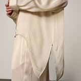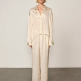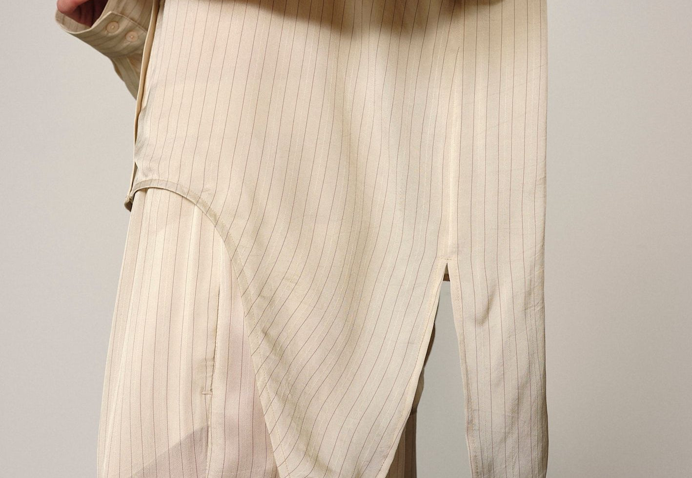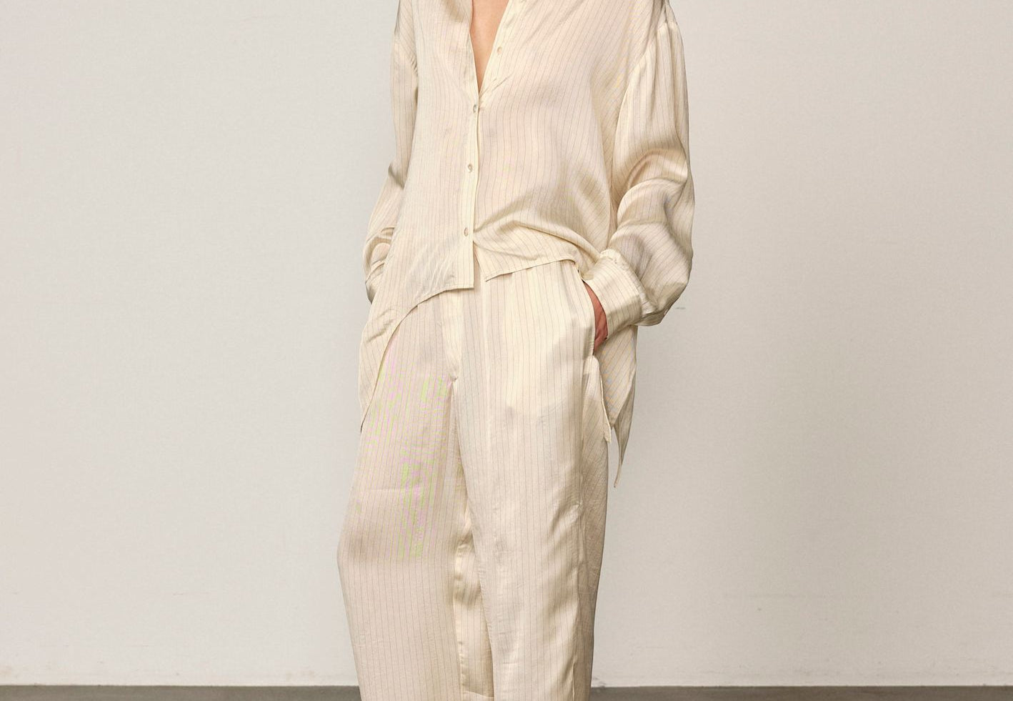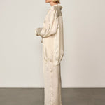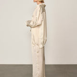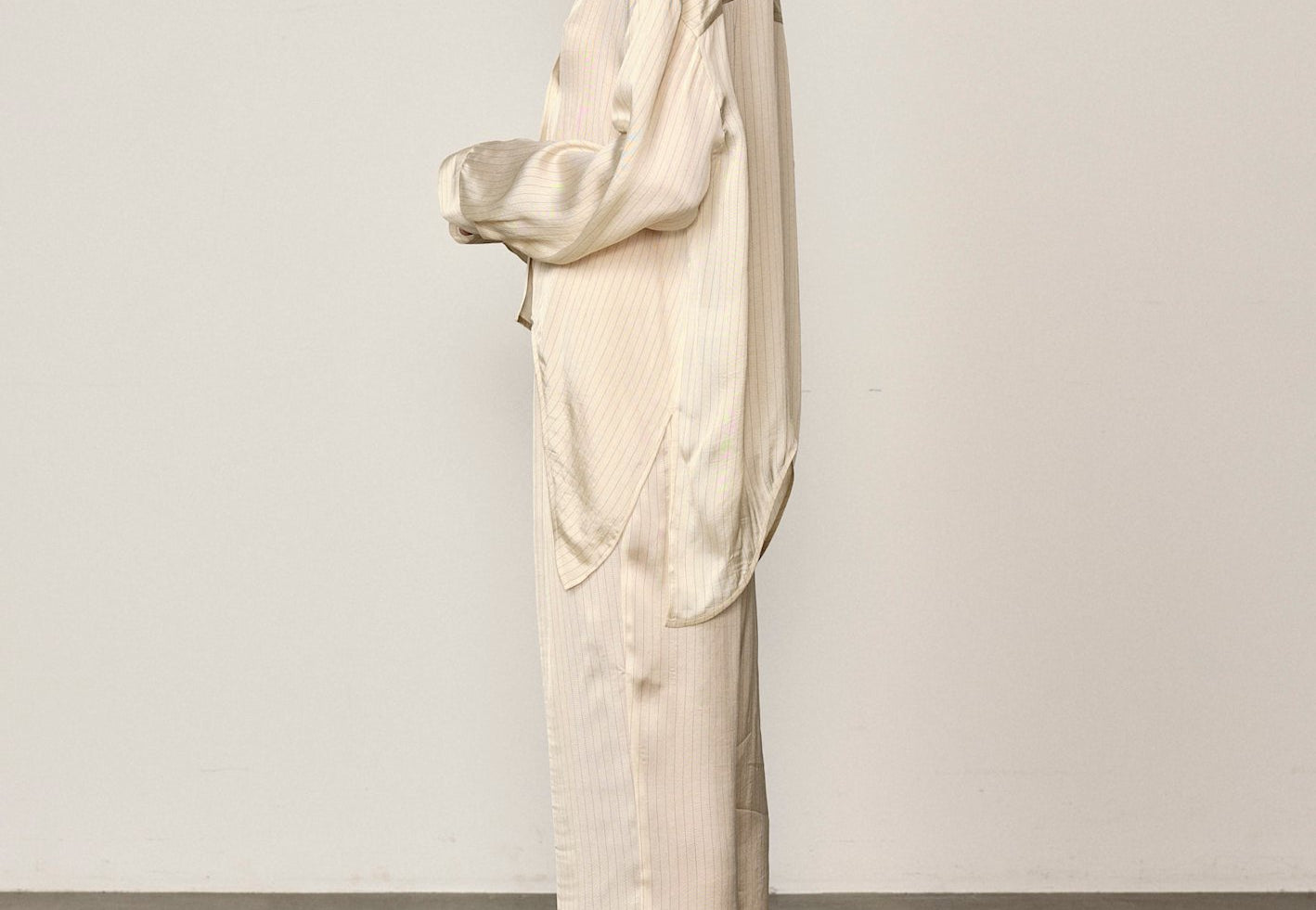 Defined by a loose silhouette with dropped shoulders, wide cuffs and subtle sheen. A timeless piece designed for effortless dressing — wear it tucked in or loose for a relaxed look.