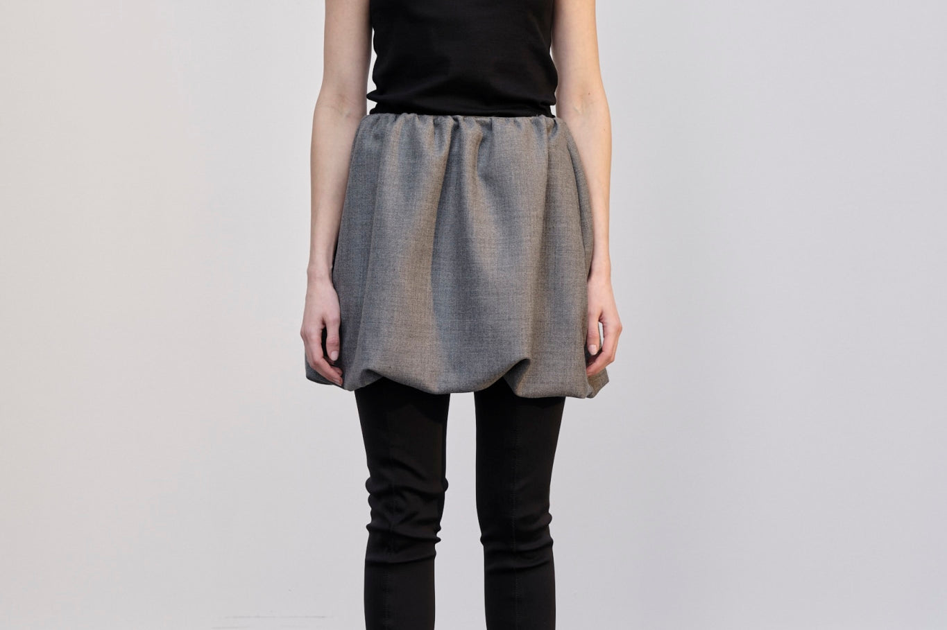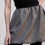 Introducing the Evans Skirt: A mid-waisted mini balloon skirt with lots of volume.