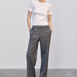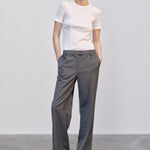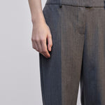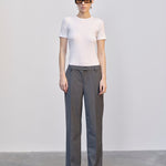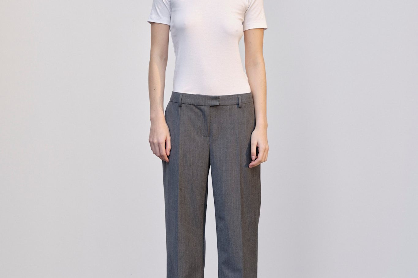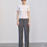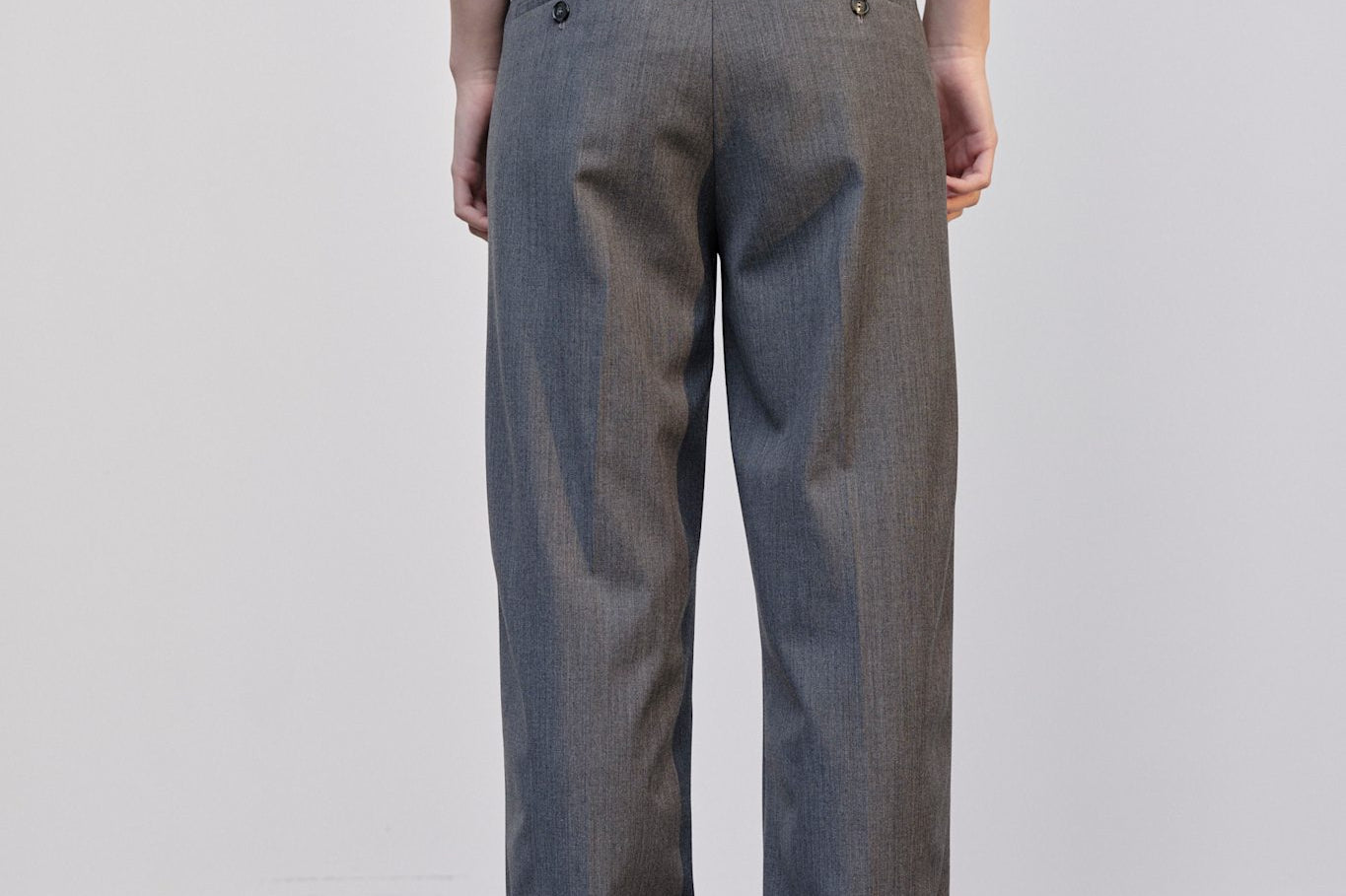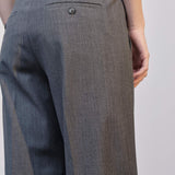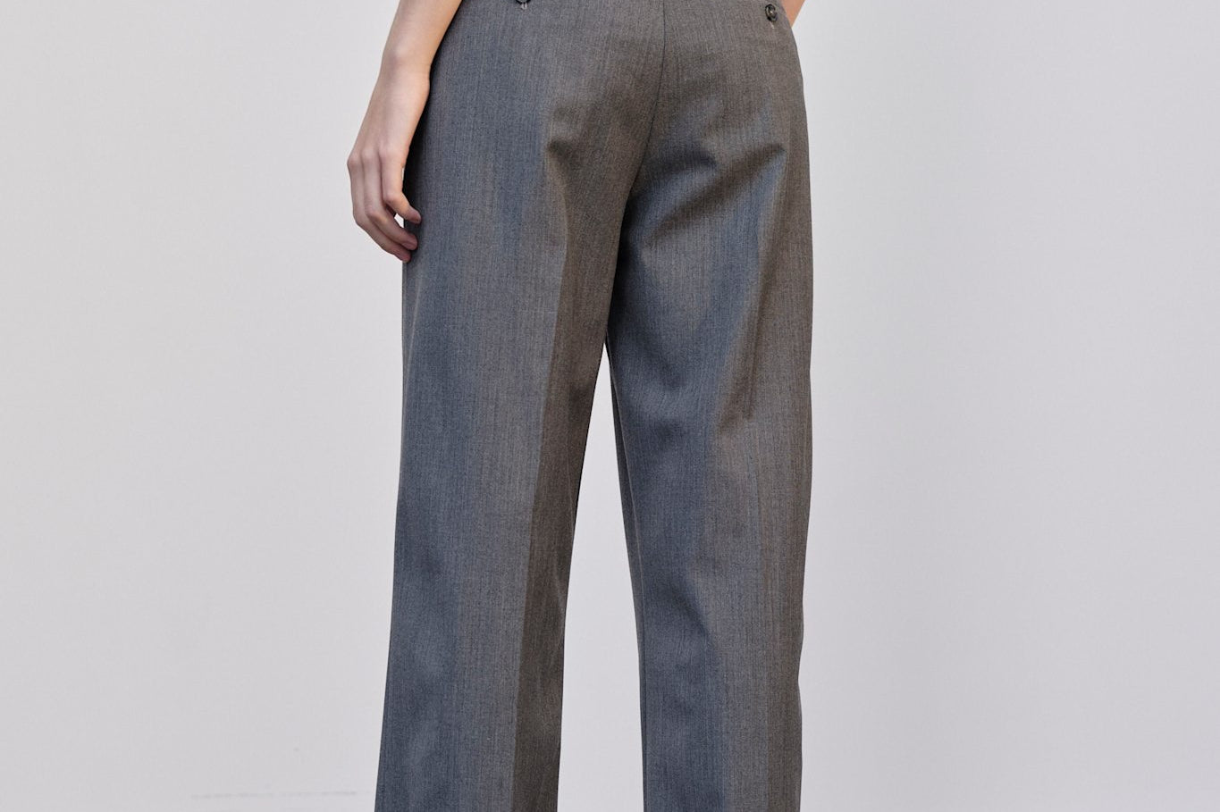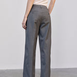 Introducing the Jack Pants: Men's-inspired mid-waisted pants featuring slanted pockets, crease lines at the front and back for a tailored look, and fake paspel pockets at the back with buttons.