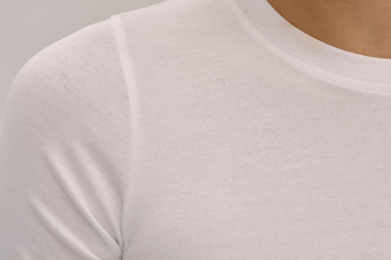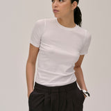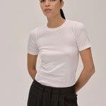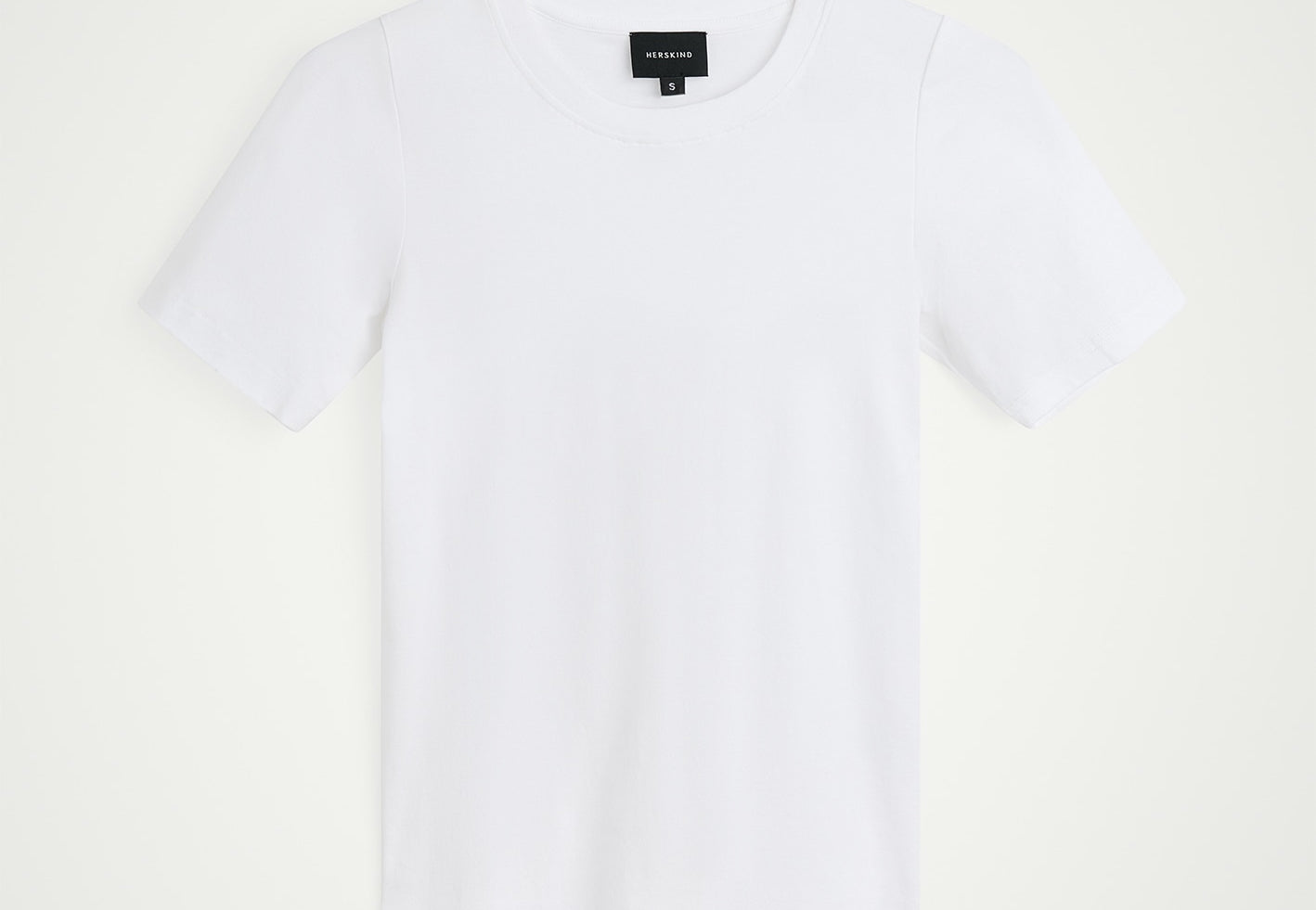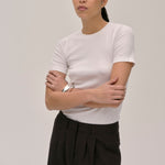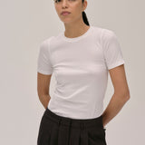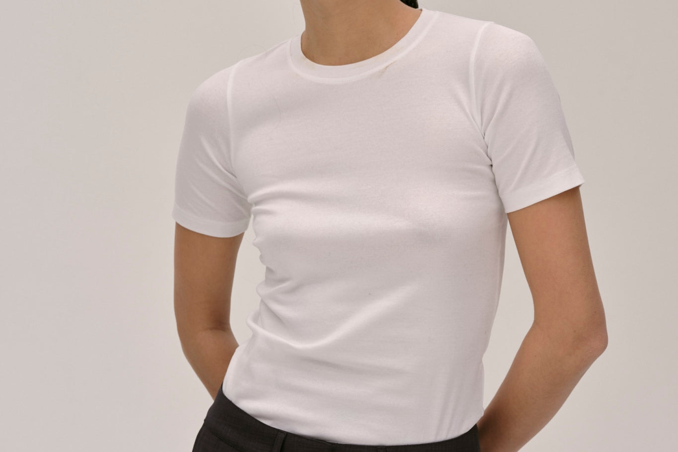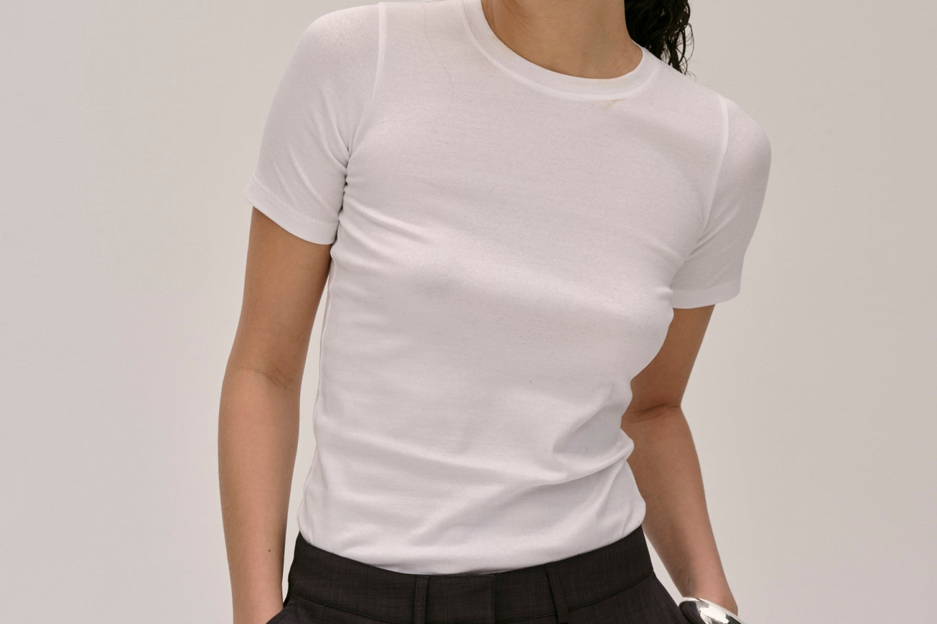 The Jacqueline T-Shirt is a round neck, slim-fit tee with tight sleeves.