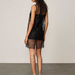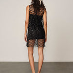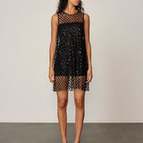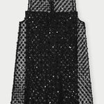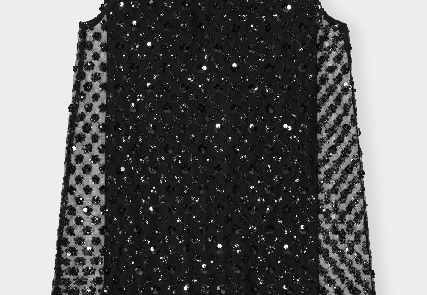 Cut in a straight silhouette with hand-applied floral sequins for subtle texture and light reflection. Comes with a matching black slip dress for effortless styling and a refined finish.