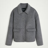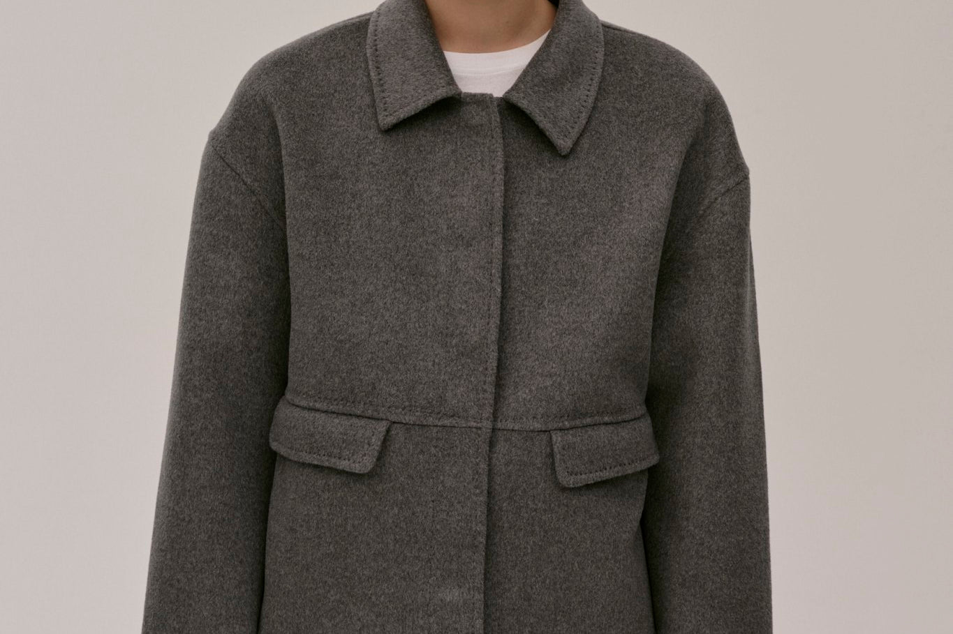 The Kurt Lux Coat is a jacket featuring a zipper closure, a round neck with a collar, a cutline at the front, and two flap pockets at the front.