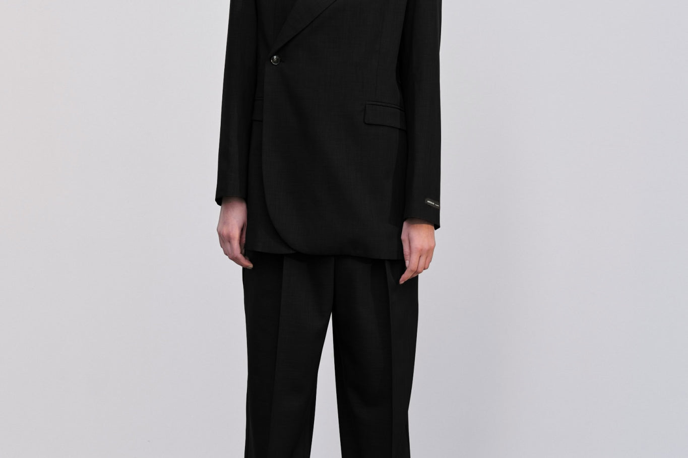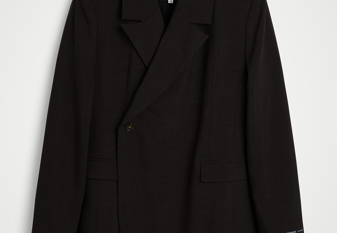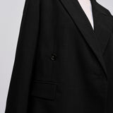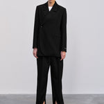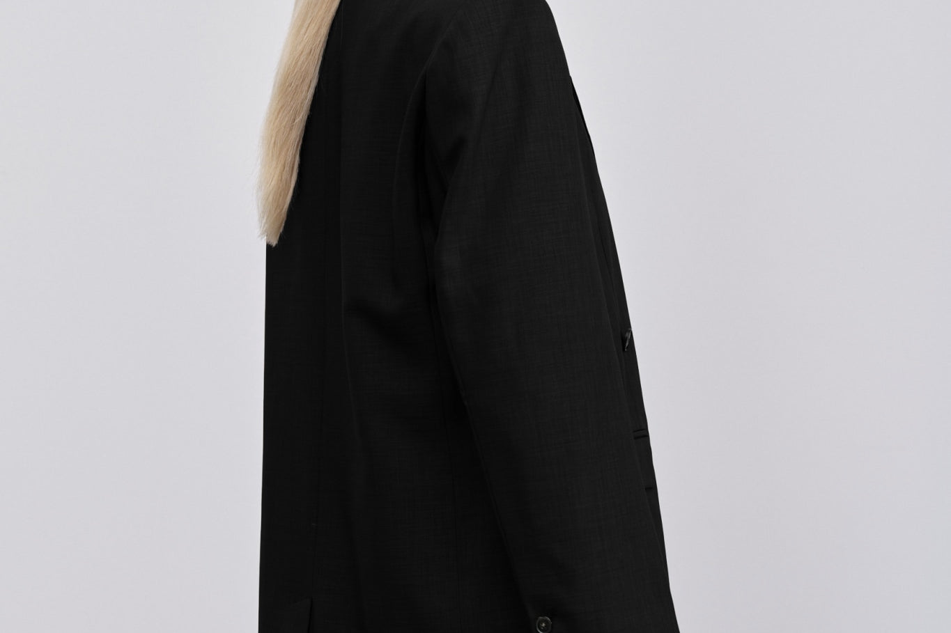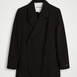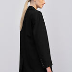 Introducing the Lilith Blazer: An oversized blazer featuring an asymmetrical front closure, rounded hemlines, two-seam sleeves, and two slits at the back side panels.