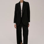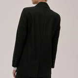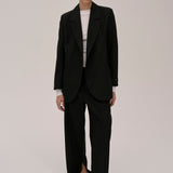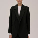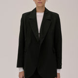 The Lilith Blazer is a casual fit blazer with an asymmetric button closure at the front. It features padded shoulders, chest and front pockets, and a cuff slit with a workable button closure.