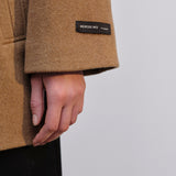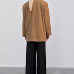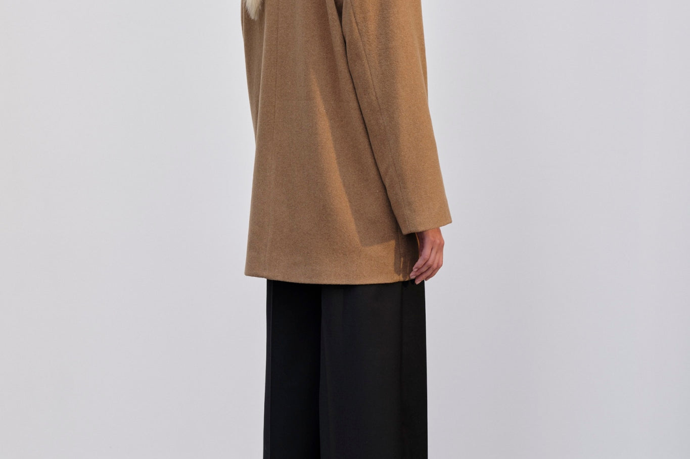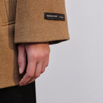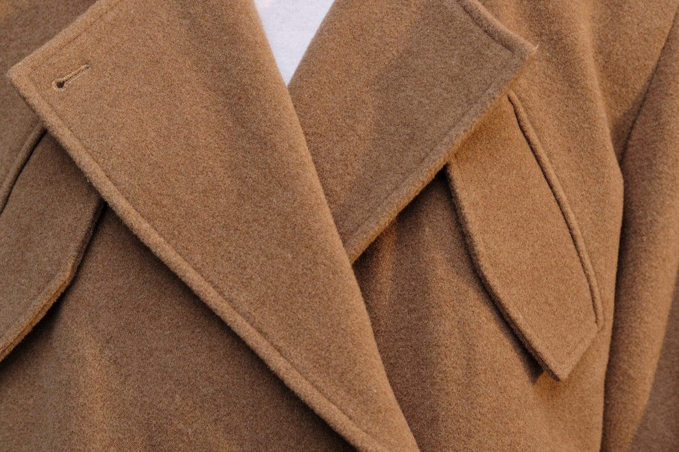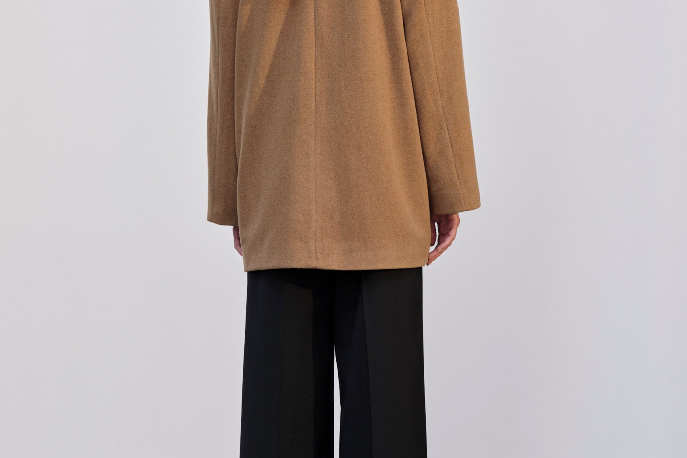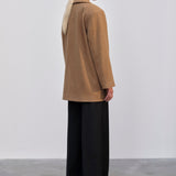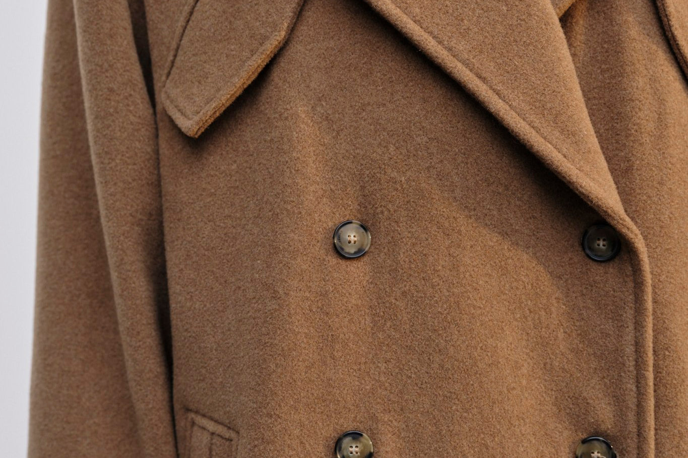 Introducing the Linda Coat: An oversized jacket featuring a double-breasted design with six buttons in the front, slanted pockets, and two slanted chest pockets with flaps.
