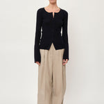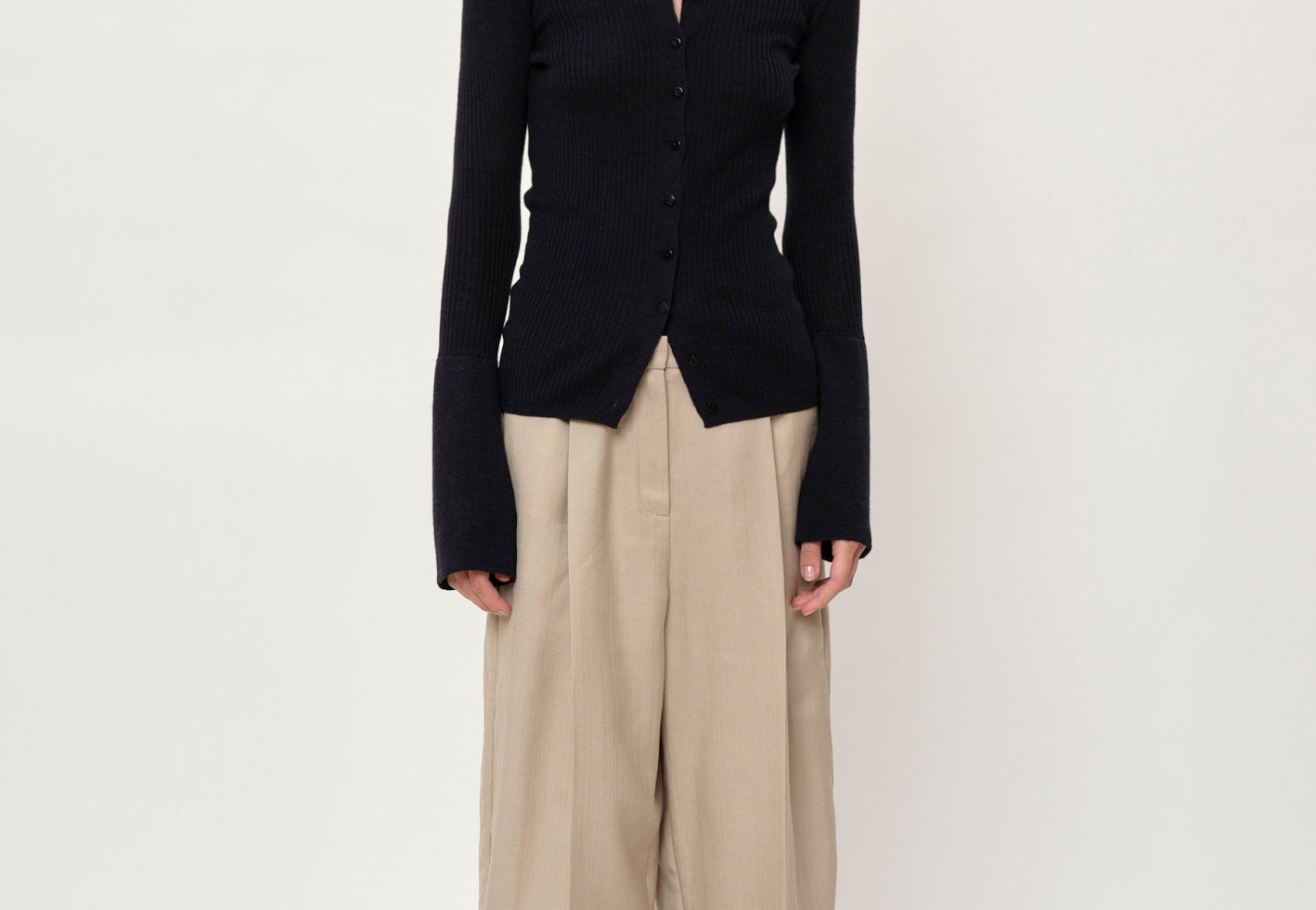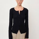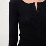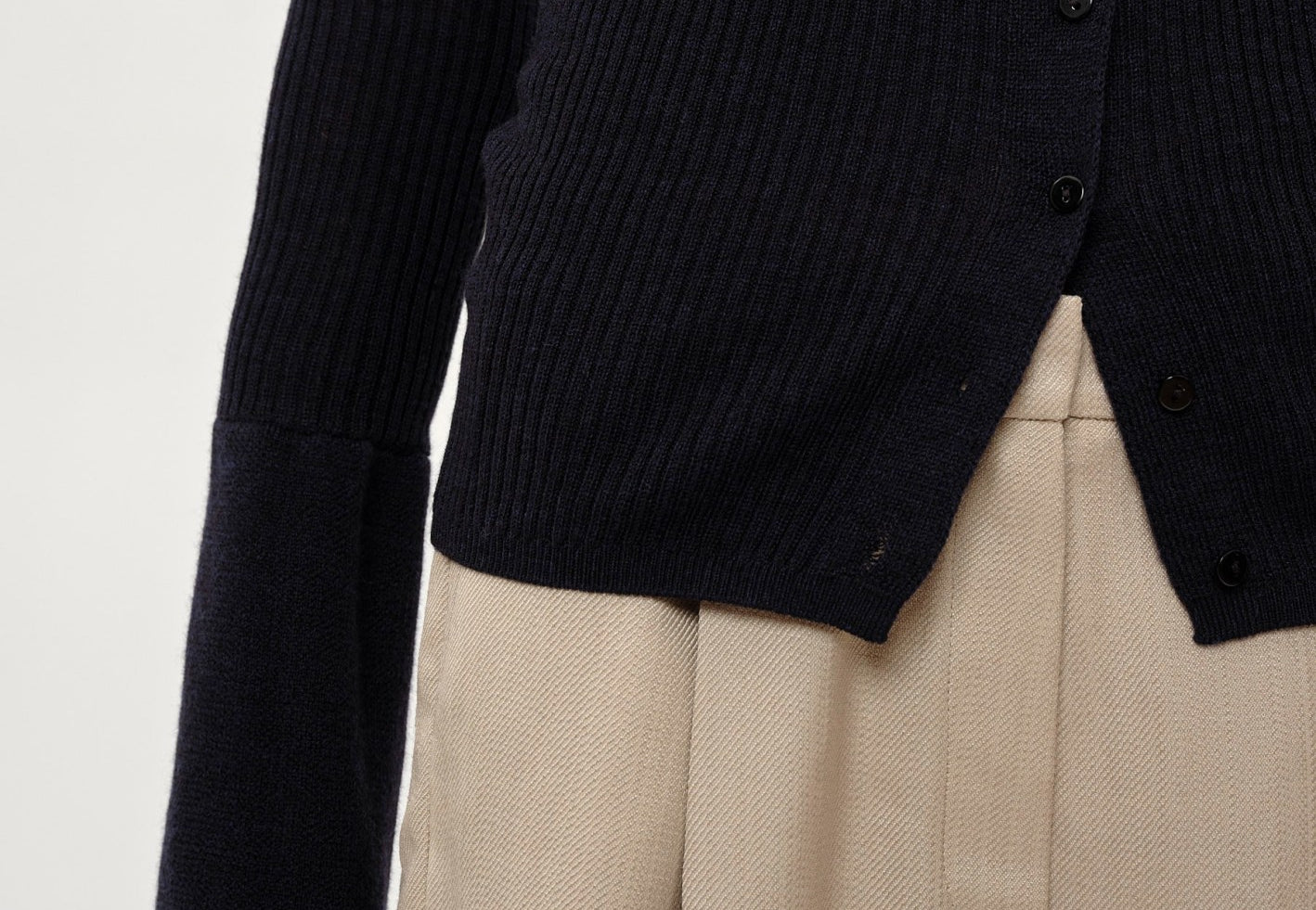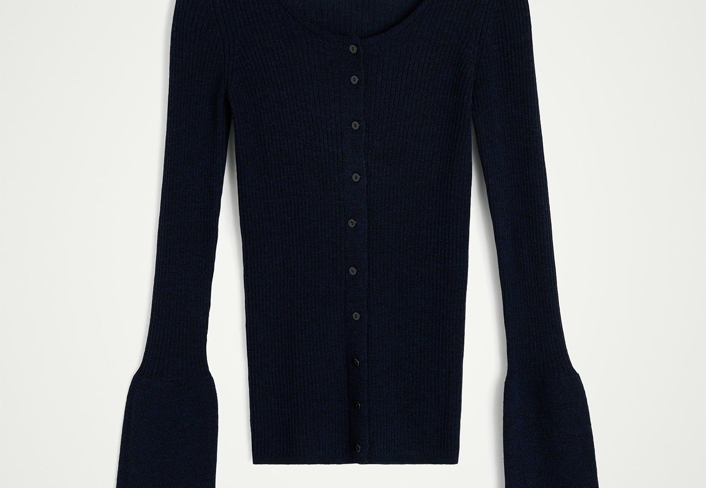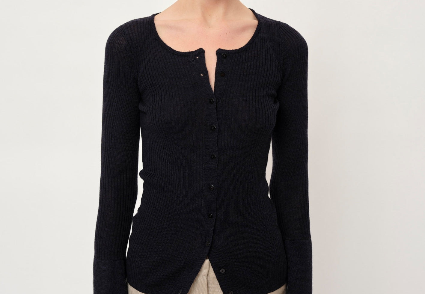 Introducing the Liv Knit Cardigan: A cardigan designed with a regular to slim fit, featuring a button closure at the front and wider details at the underarms, adding extra length