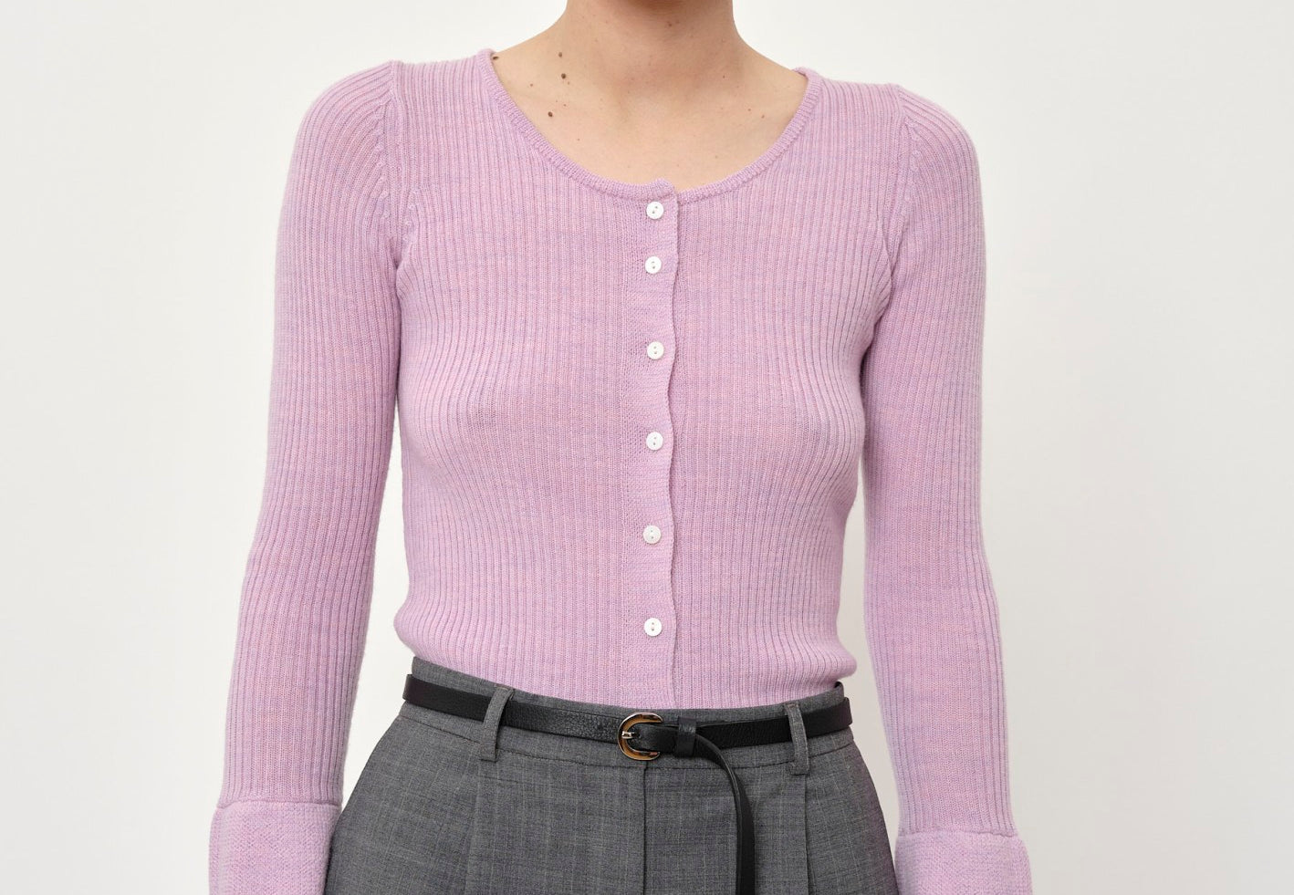 Introducing the Liv Knit Cardigan: A cardigan designed with a regular to slim fit, featuring a button closure at the front and wider details at the underarms, adding extra length