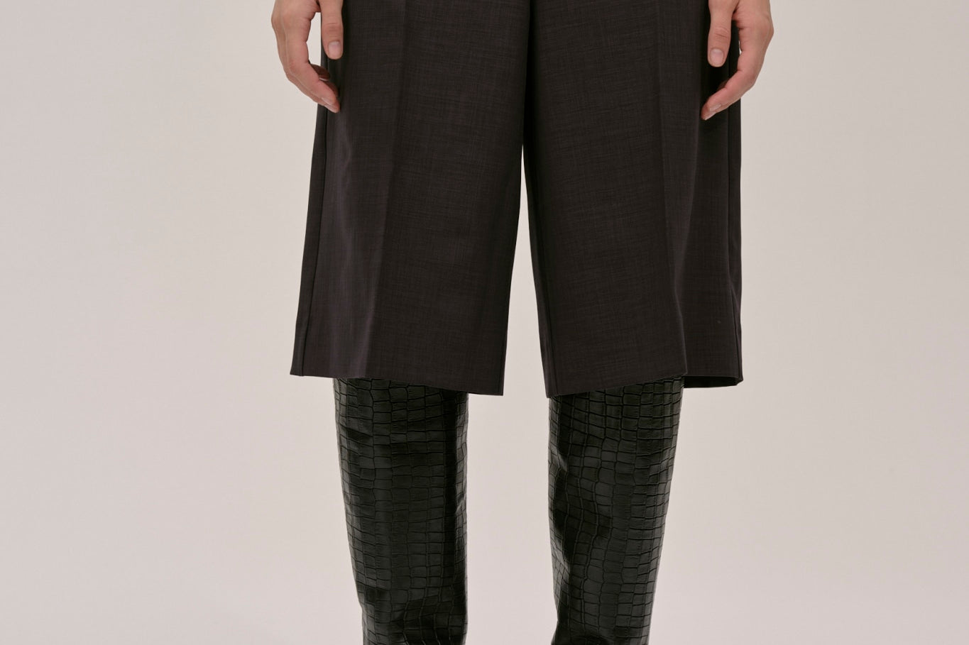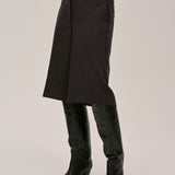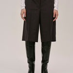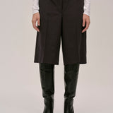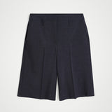 The Maxime shorts is a pair of mid-waisted Bermuda shorts that hit at the knee, featuring a deep rise at both the front and back and a crease line at the front.
