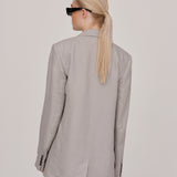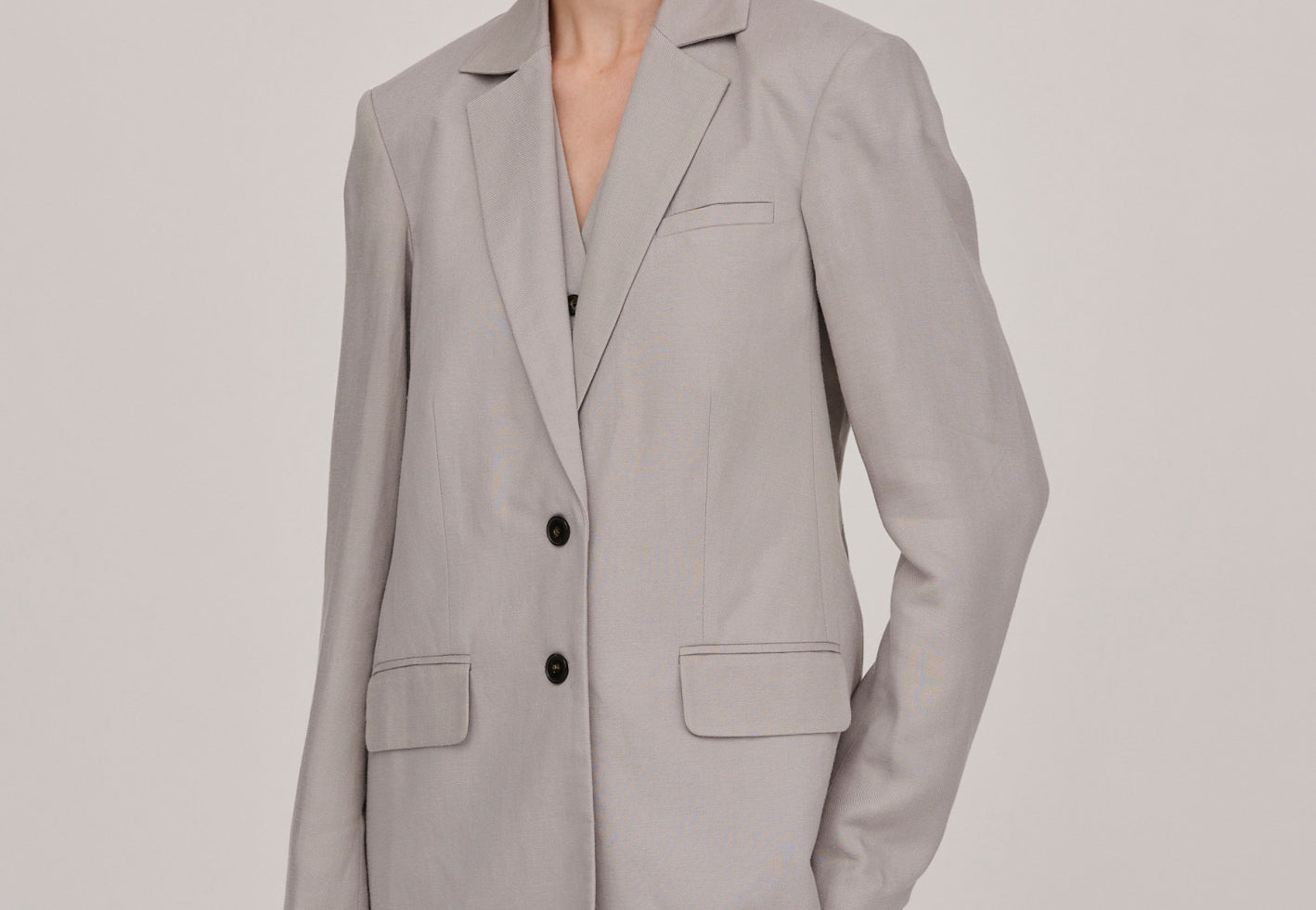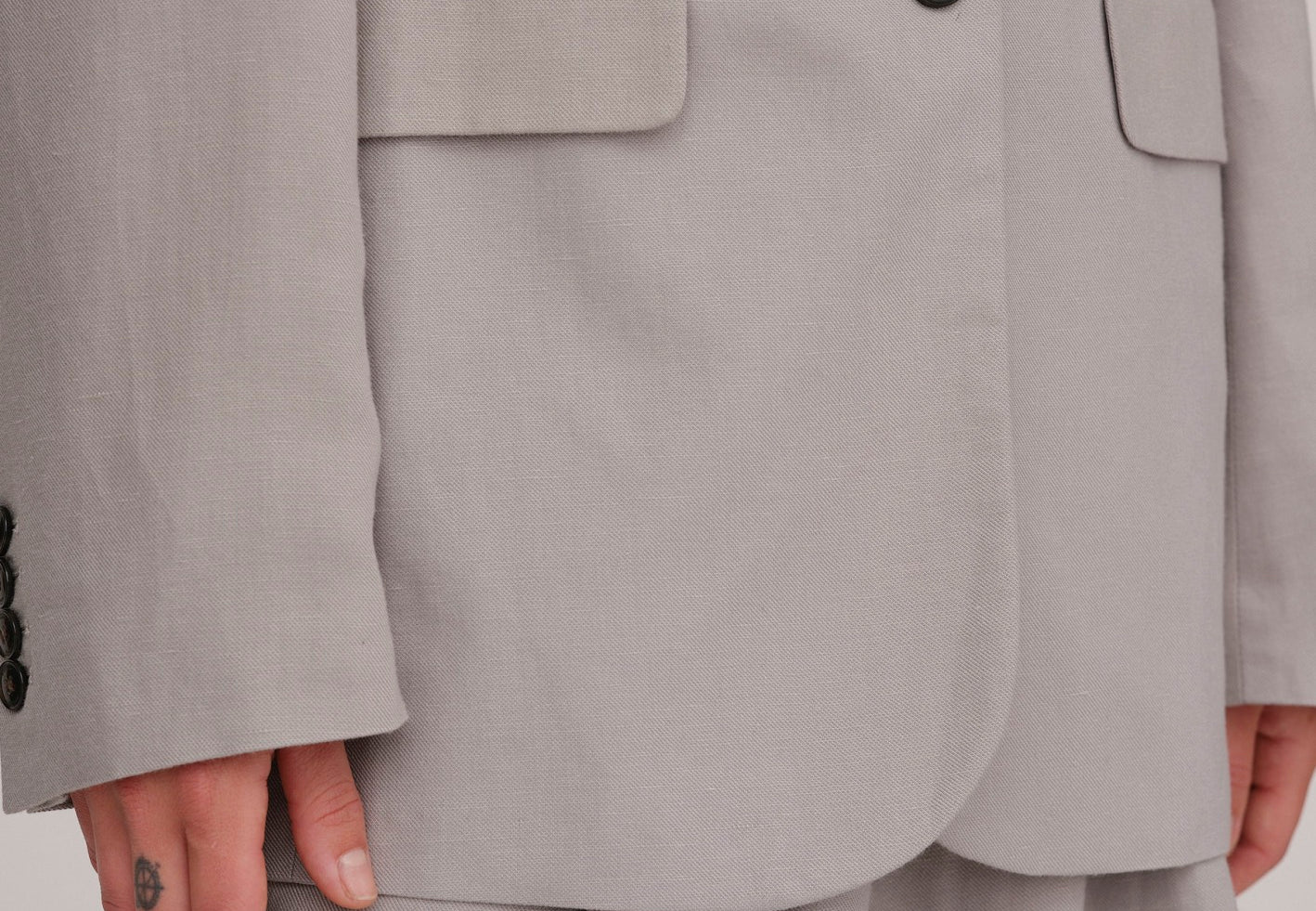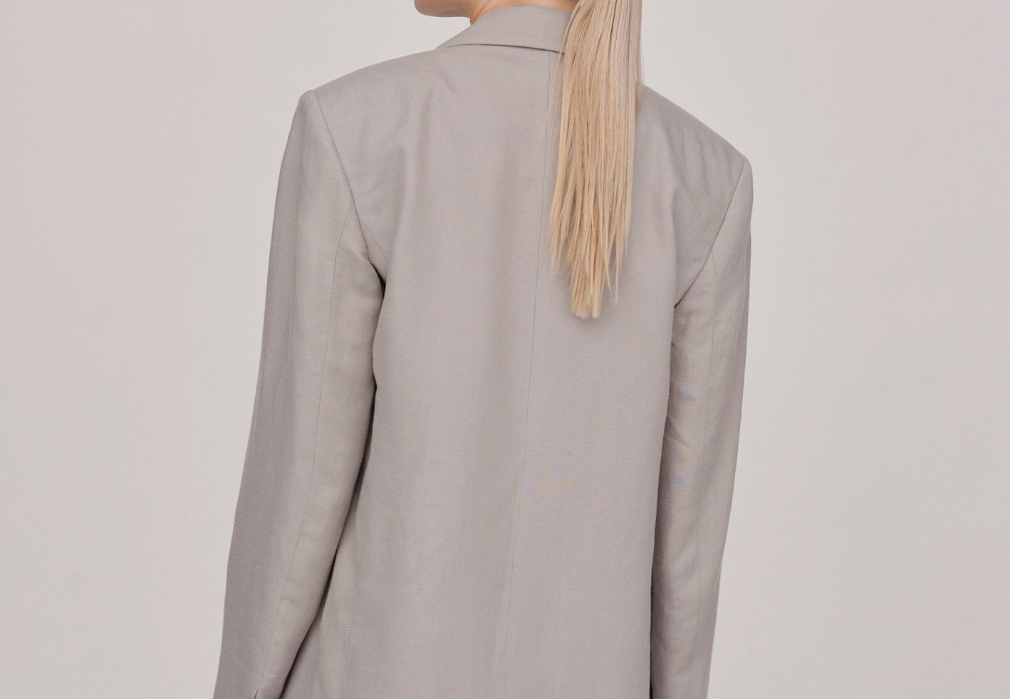 The Mercy Blazer is a classic long blazer, single-breasted with paspel pockets, and features a single slit at the back.