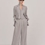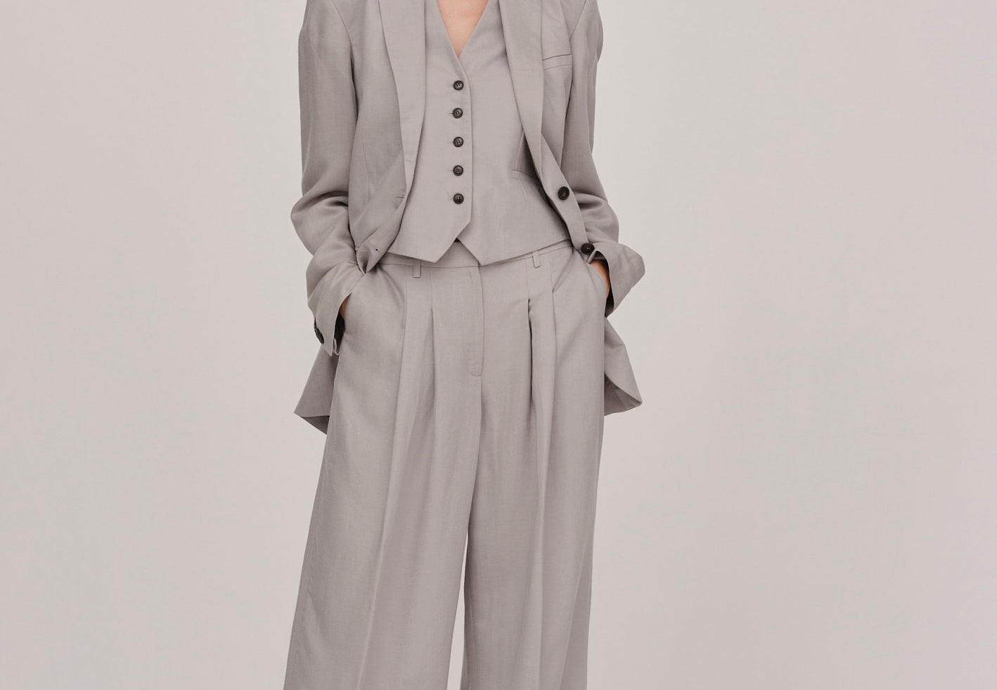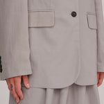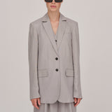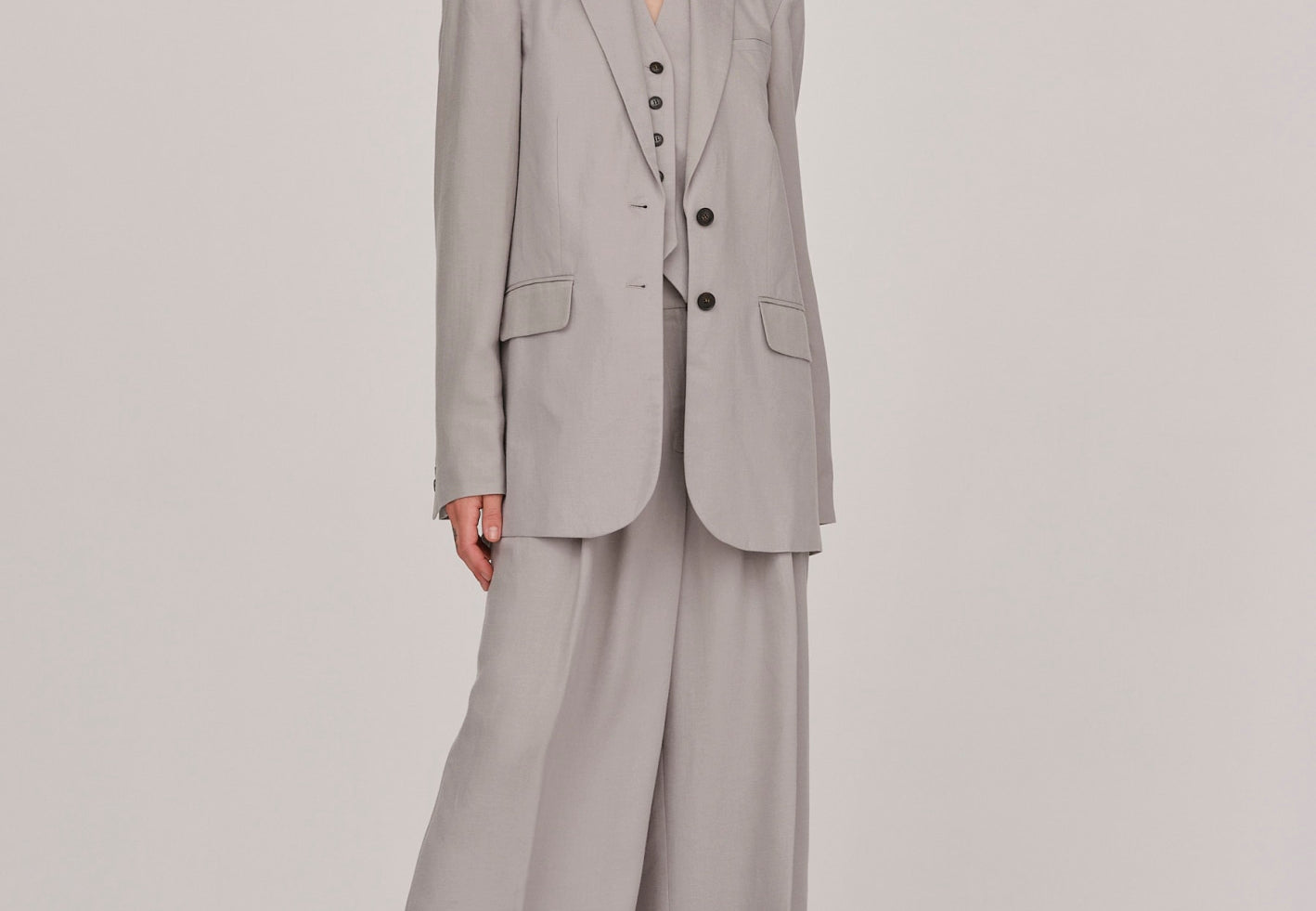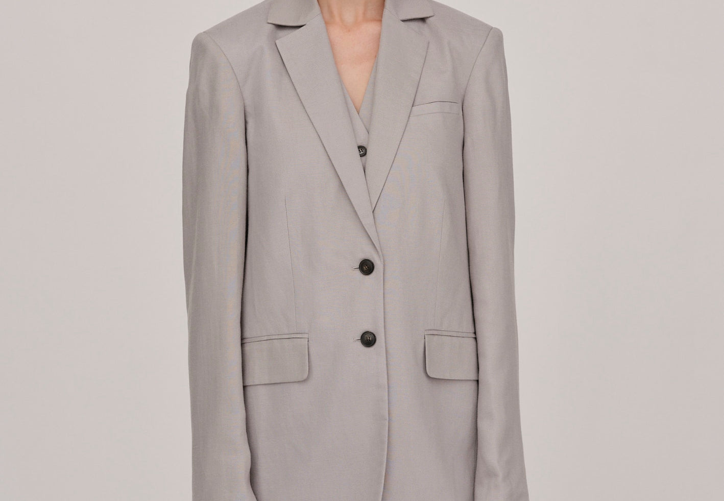 The Mercy Blazer is a classic long blazer, single-breasted with paspel pockets, and features a single slit at the back.