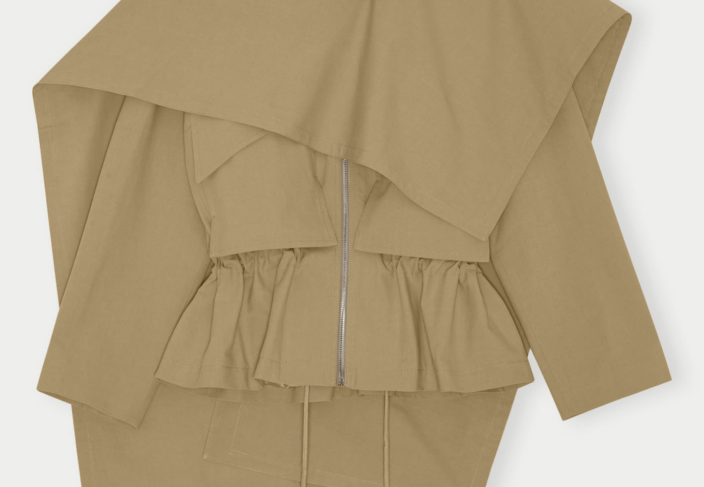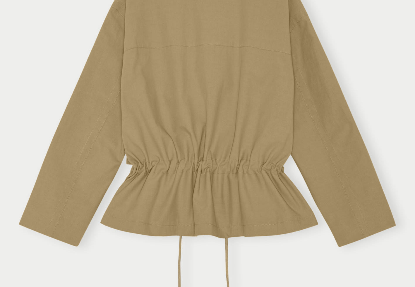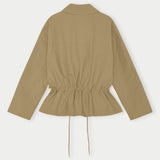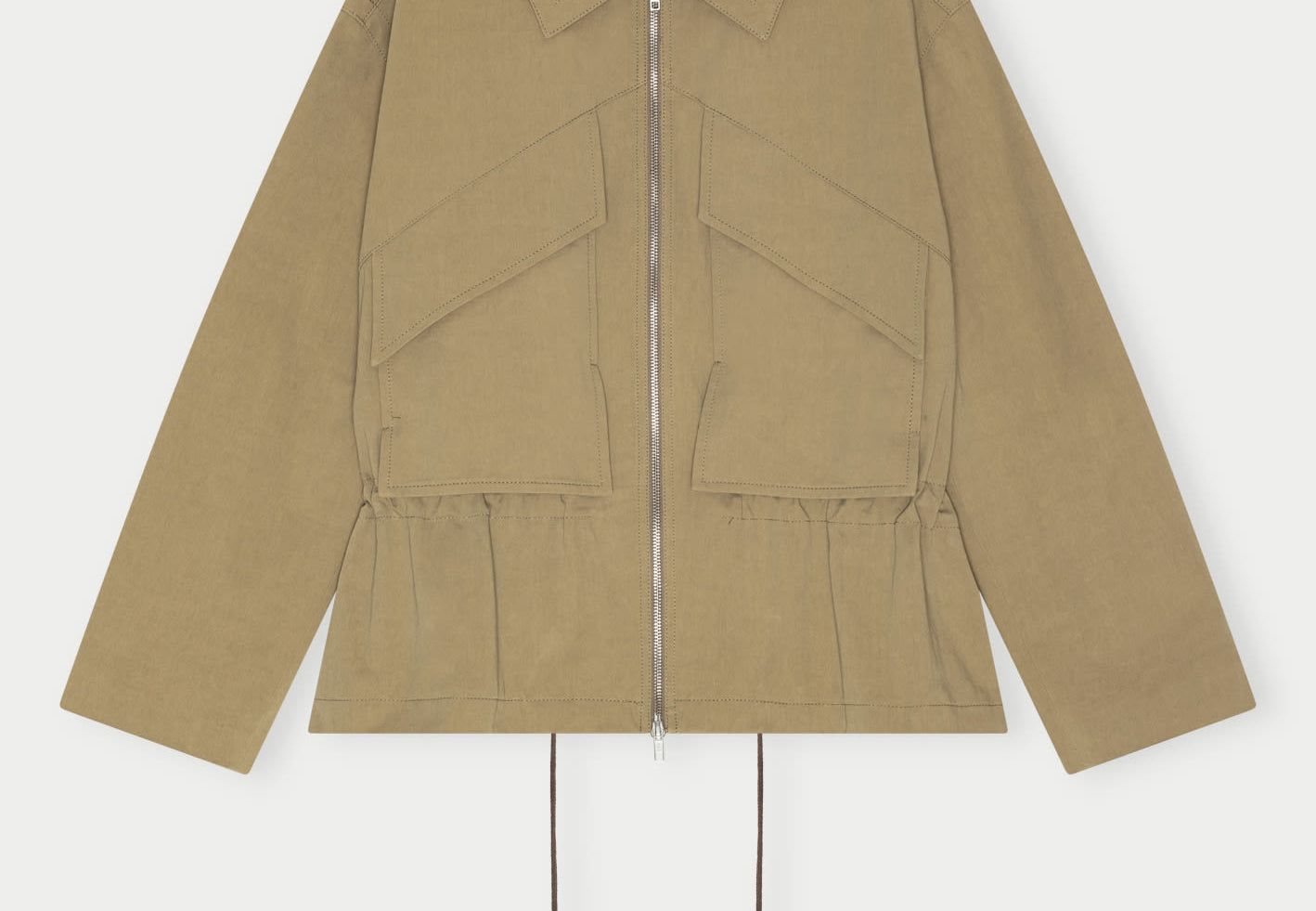 An updated version of one of our most popular jackets. Designed with a relaxed silhouette, adjustable drawstring waist, and oversized flap detailing for a sculptural look. A refined piece that balances utility and femininity.