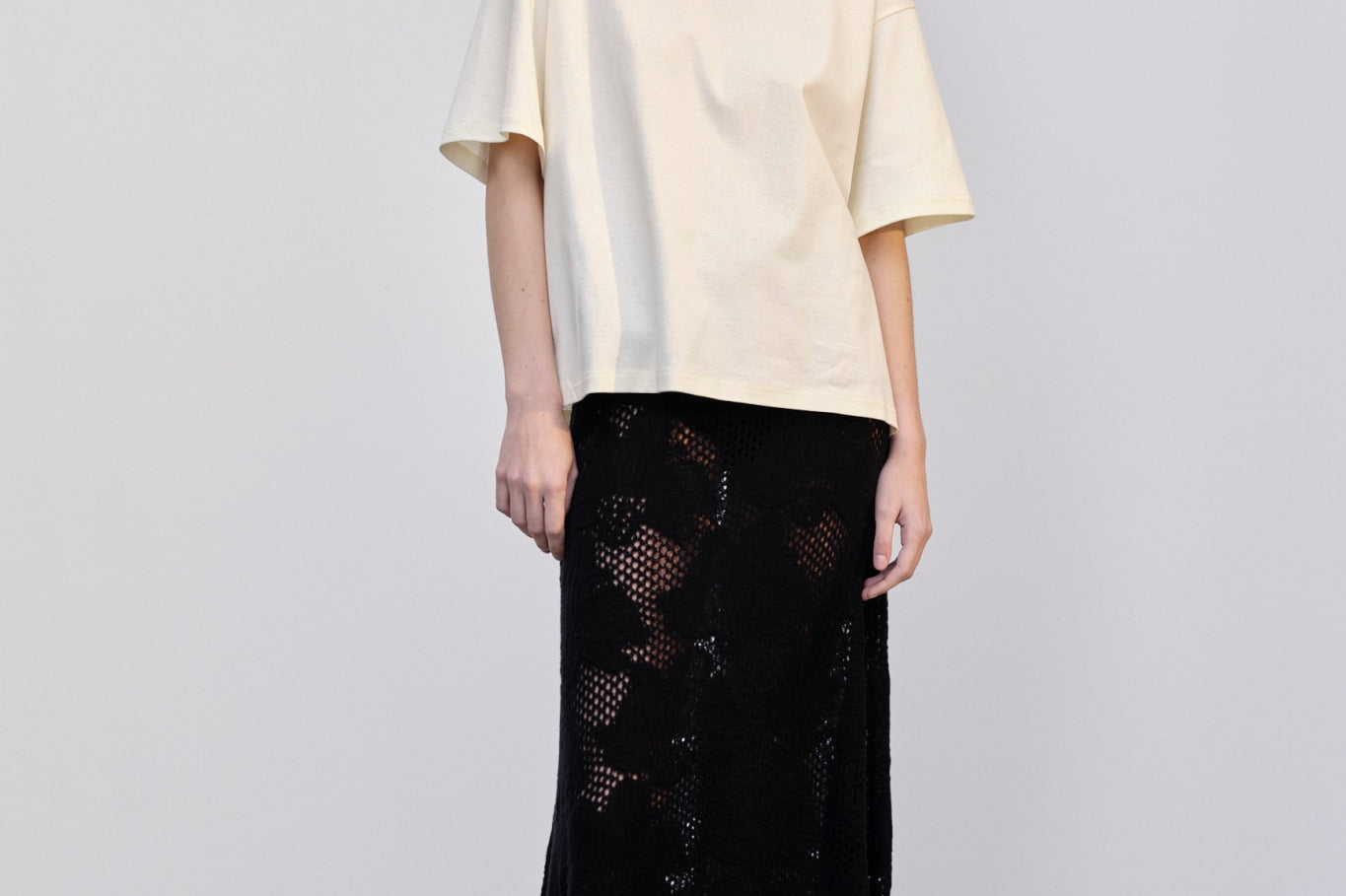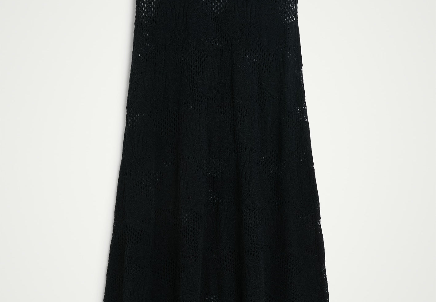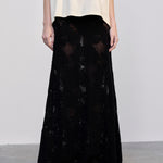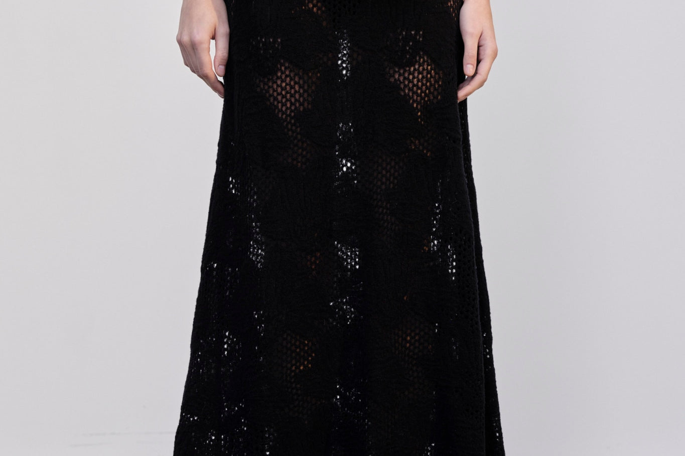 Introducing the Mimi Knit Skirt: A mid-waisted knit skirt with soft elastic at the waist, designed in an A-shape and full length. It includes an underskirt.