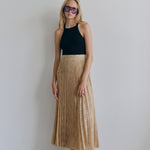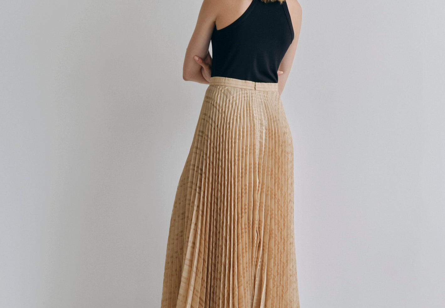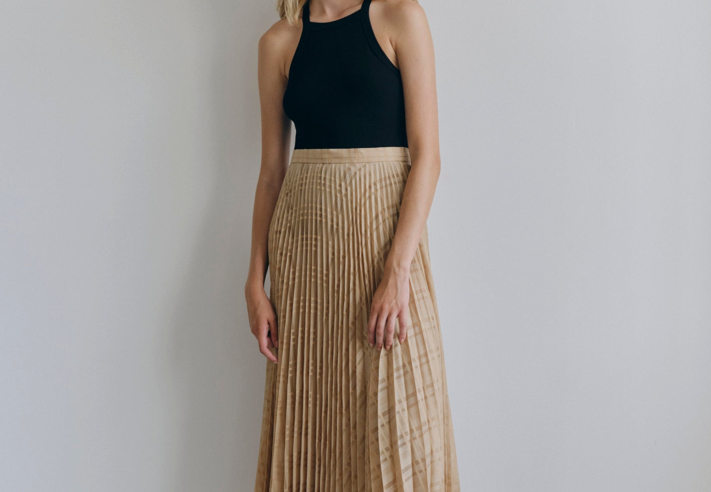 The Nessa Skirt is a signature Birgitte Herskind style. The midi skirt falls elegantly from the waist in pleats that allow the skirt to move with the body. Style with the Mini Body Stocking for those warm summer days.