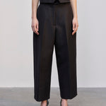 Introducing the Olsen Pants: Mid-waisted cropped pants made from Italian wool by Bonotto, designed with a loose fit.