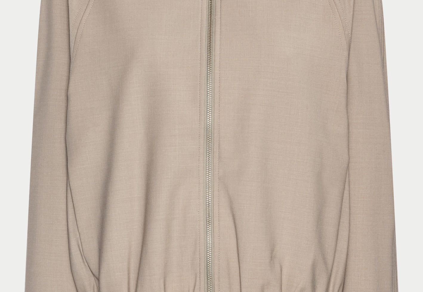 A refined alternative to the classic blazer. Designed with a relaxed, structured silhouette featuring a zip closure and elasticated hem for a subtle, modern volume. Perfect for pairing with matching trousers or casual separates.