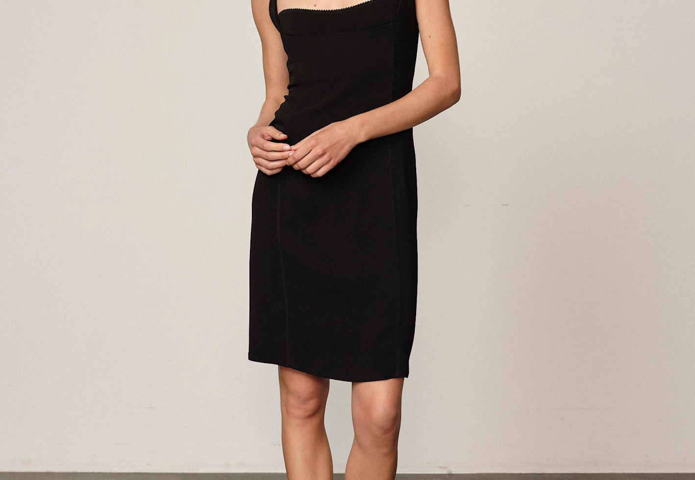 Features delicate stitching along the bust and body, creating a sculpted silhouette with understated detailing. A minimal piece with quiet confidence — elevated, effortless, and endlessly versatile.