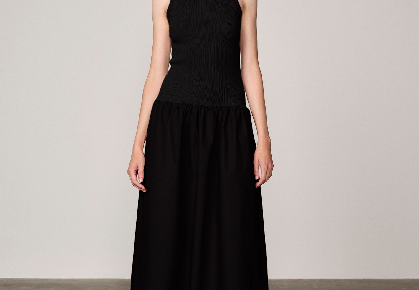 • Rib-knit bodice with natural stretch