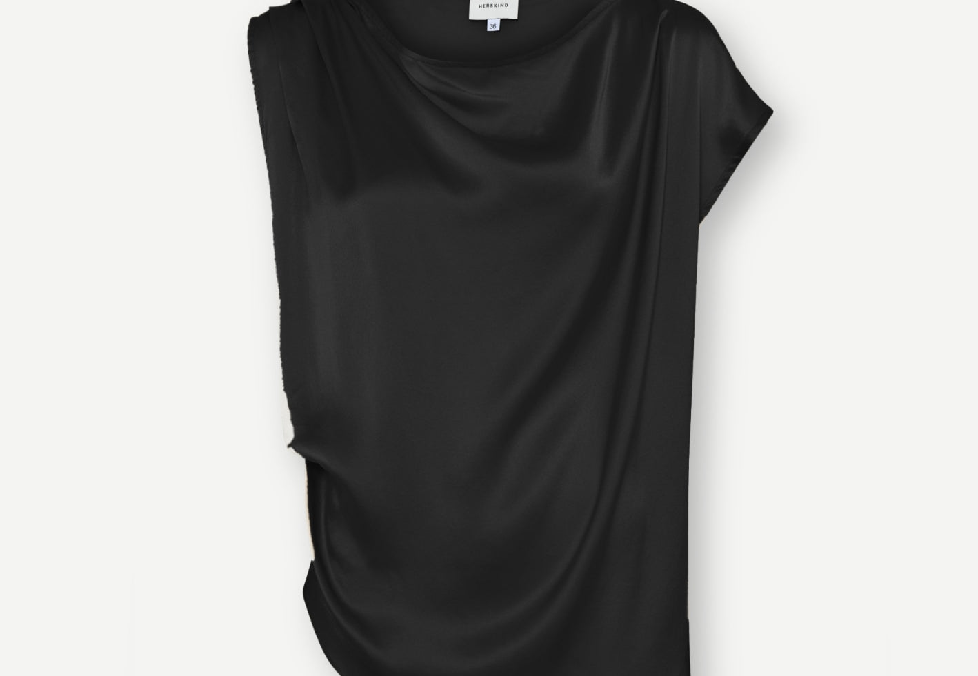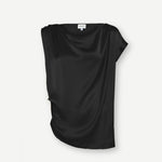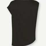 The Will Top is an asymmetric one-shoulder silk top with an off-shoulder design that hangs loosely.